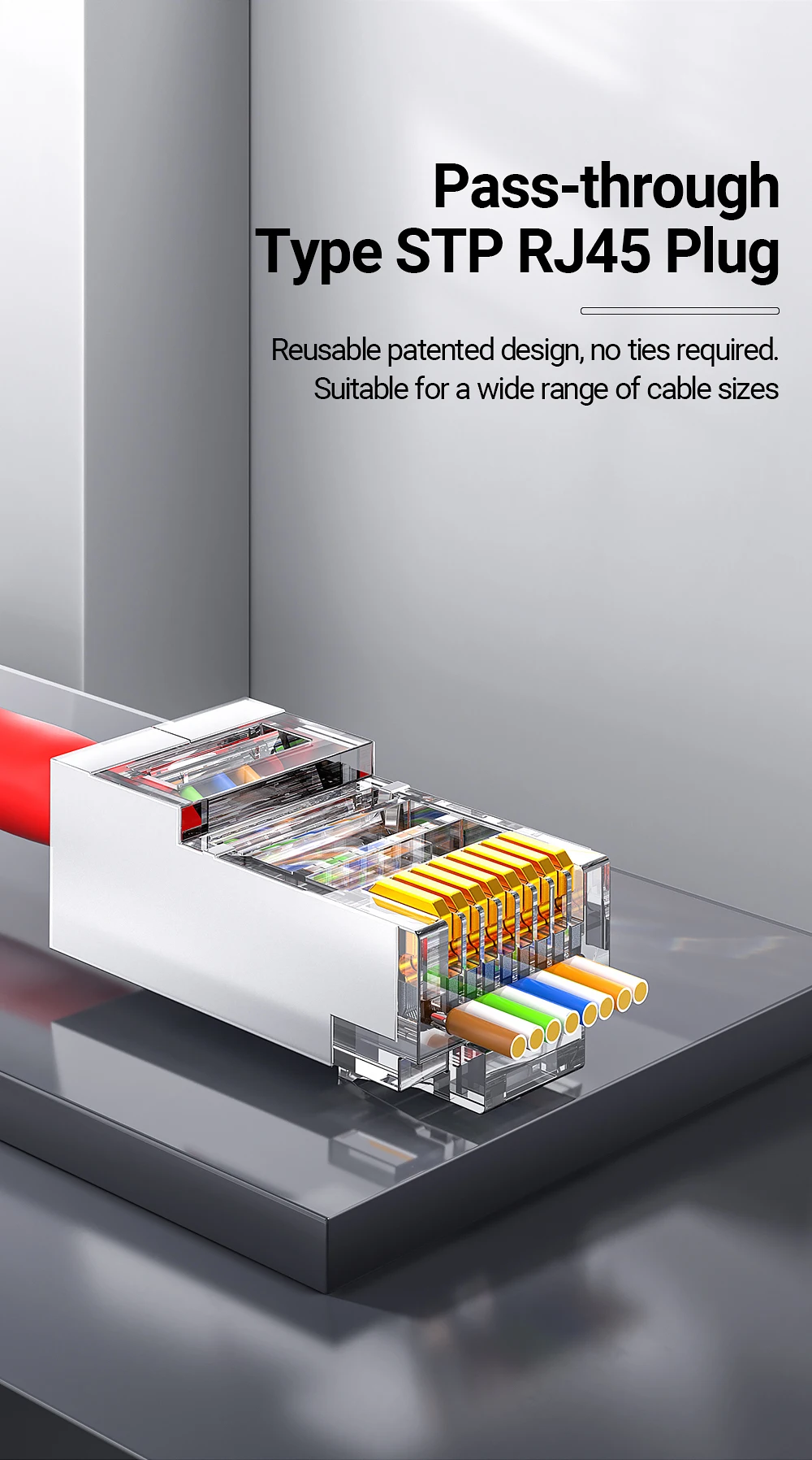 EL PAQUETE INCLUYE -10/30/100 piezas Pasar a través de conectores STP RJ45