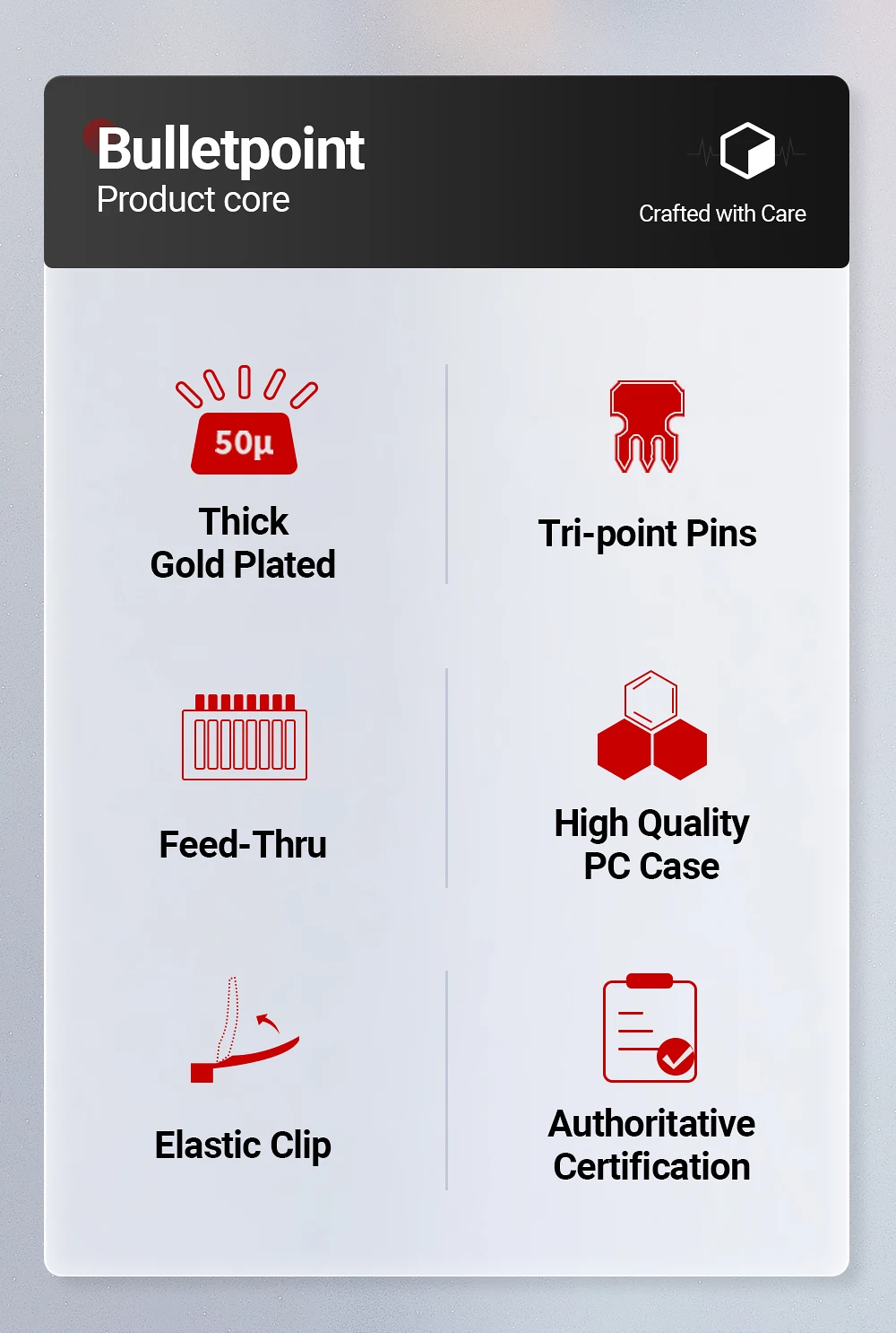 Punto de balaChapado en oro grueso/Pasadores de tres puntos/Alimentación/Caja de PC de alta calidad/Clip elástico/Certificación autorizada