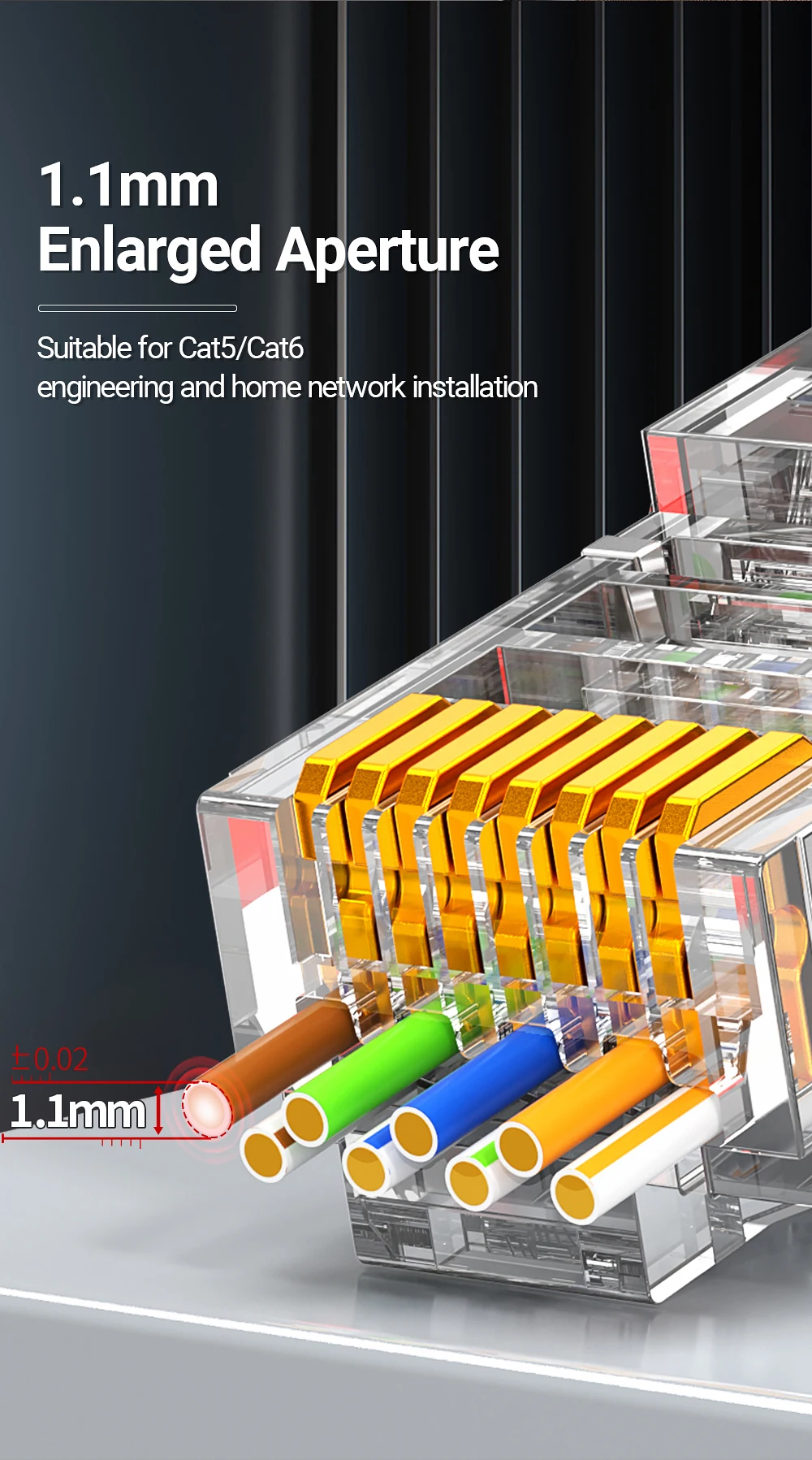 Apertura ampliada de 1,1 mmAdecuado para ingeniería Cat5/Cat6 e instalación en redes domésticas.