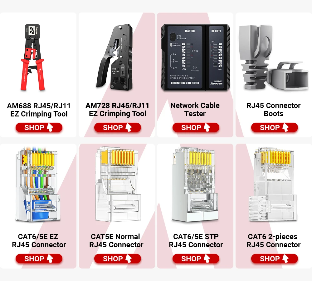 Comprar Conectores AMPCOM Pass Through STP RJ45, CAT6 CAT5E blindados 3/50μ Enchufes modulares 8P8C chapados en oro Extremo de engarzado para cable Ethernet