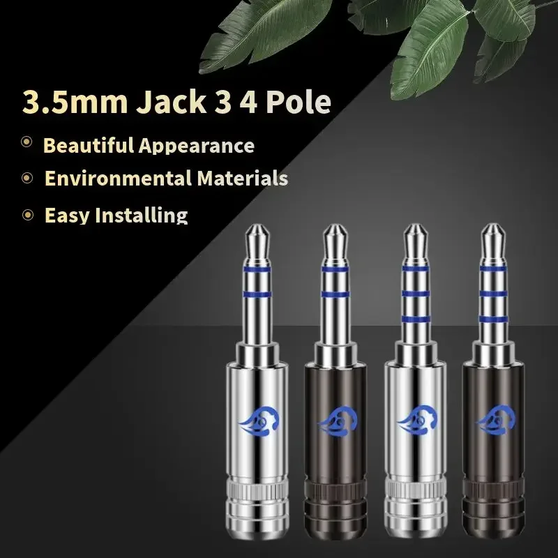 Comprar Conectores de Audio de cobre rodio, Terminal de altavoz de 3,5mm y 1/8 pulgadas, conector macho de 3 y 4 polos, conector Jack de 3,5mm, electrónica de consumo