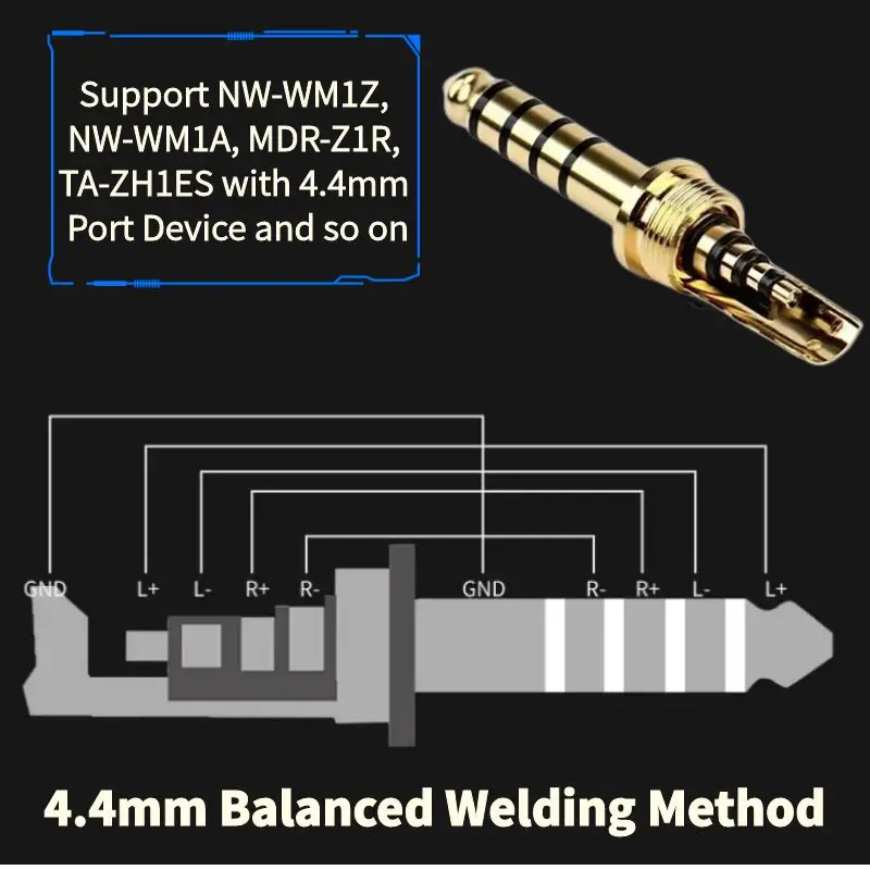 - Admite dispositivos de audio con interfaces de salida balanceadas de 4,4 mm, como NW-WM1Z, NW-WM1A, MDR-Z1R, TA-ZH1ES, etc.