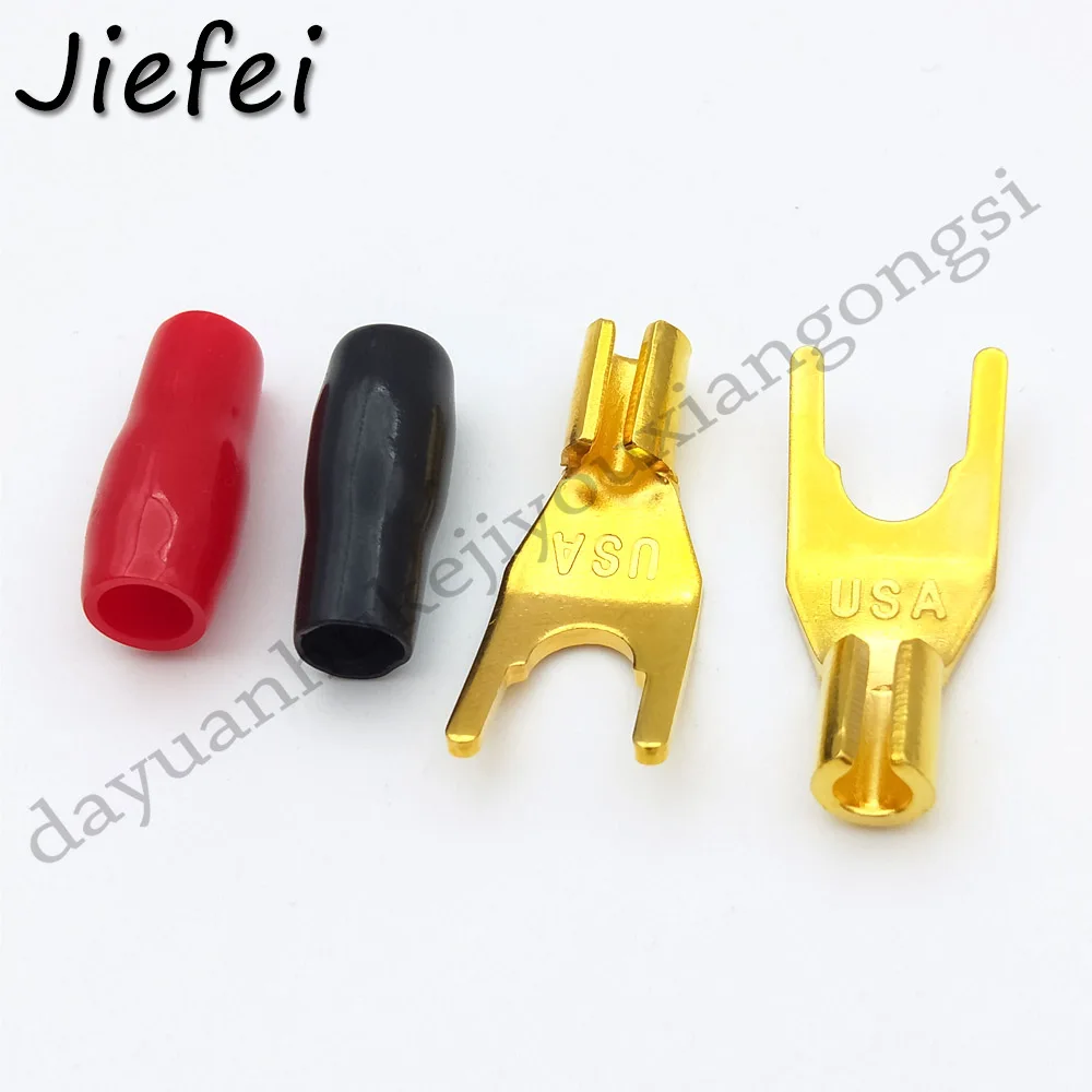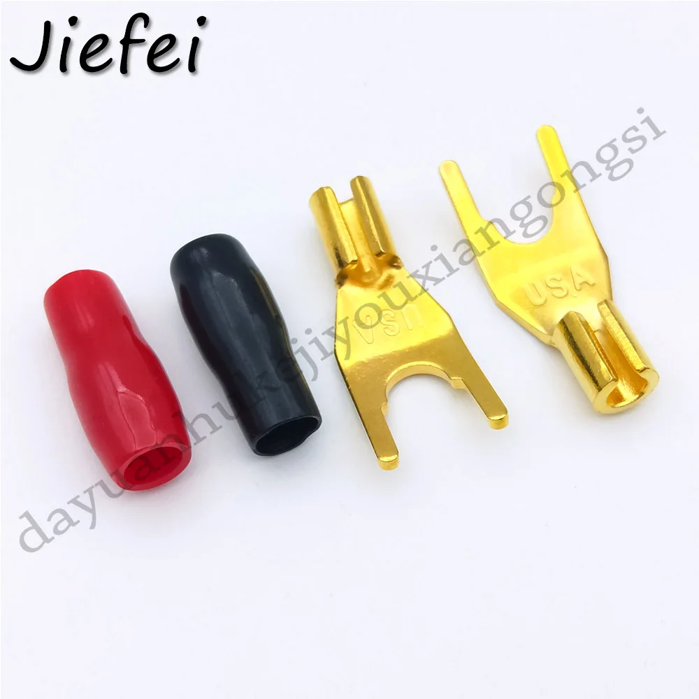 Comprar Conectores banana chapados en oro, horquilla sin soldadura, altavoz, adaptador de enchufe Banana, 6 piezas, nuevo