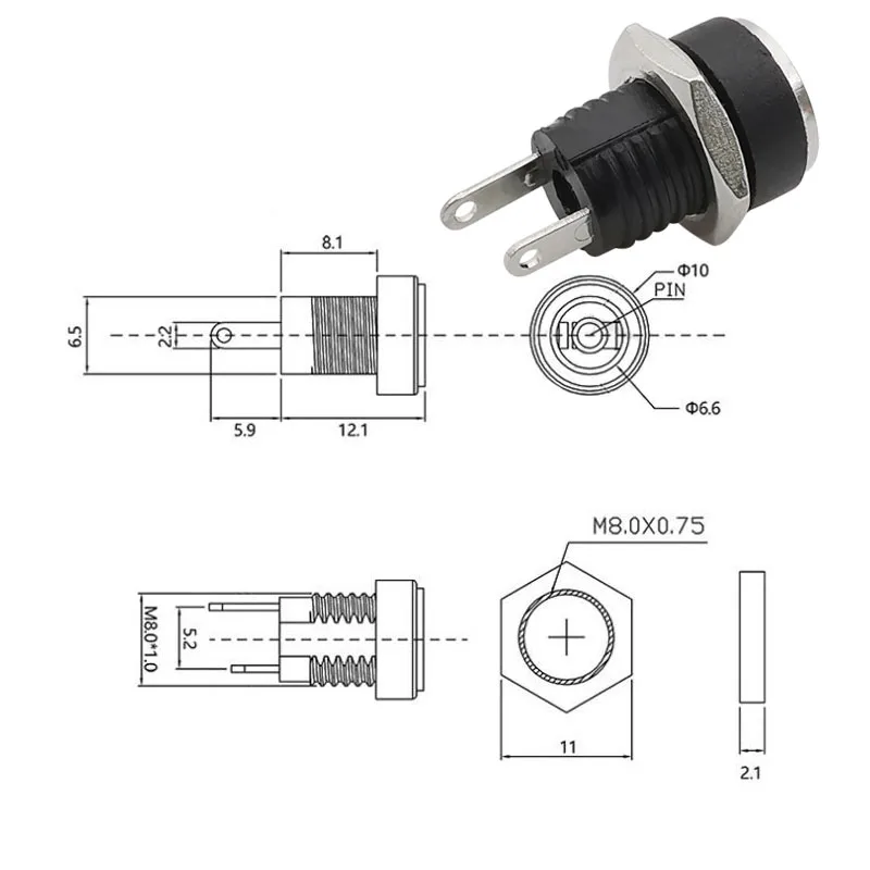 5/10 piezas 5,5x2,1mm conectores DC enchufe hembra macho enchufe tuerca Panel de montaje adaptador de corriente CC 2,1*5,5 DC-022 DC-022B
