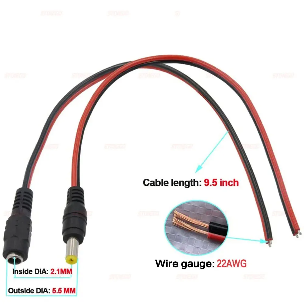 Comprar Conectores de CC macho/hembra, adaptador de línea de Cable, fuente de alimentación de 5,5x2,1mm, 10/20/30/50 piezas, 12V