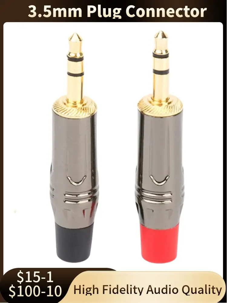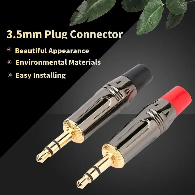 Comprar Conectores de clavija de Audio Jack de 3,5mm, macho estéreo de 3 polos chapado en oro para soldar, reemplazo de conector auxiliar de 3,5mm con conectores traseros