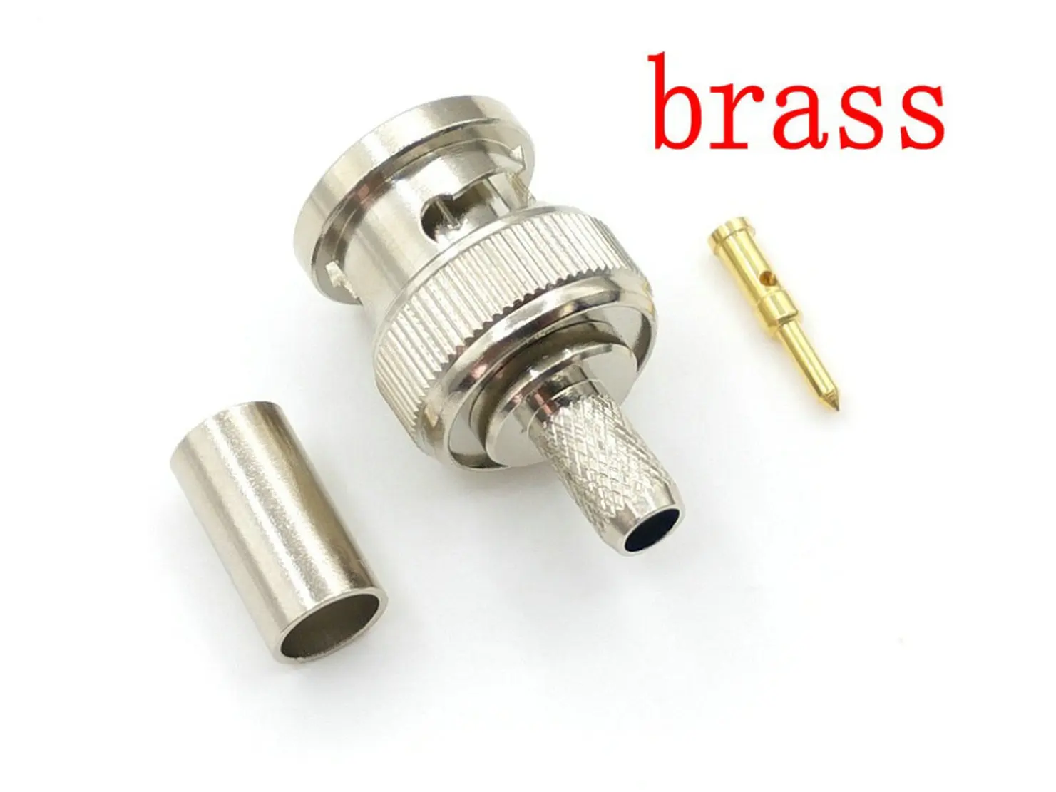 Comprar Conectores de crimpado de enchufe BNC de latón, Conector de cable de antena macho coaxial RG58 piezas, 100 RG-58