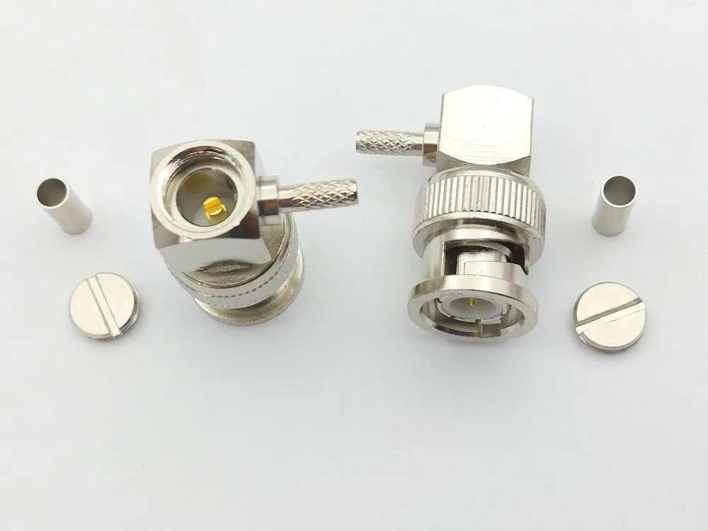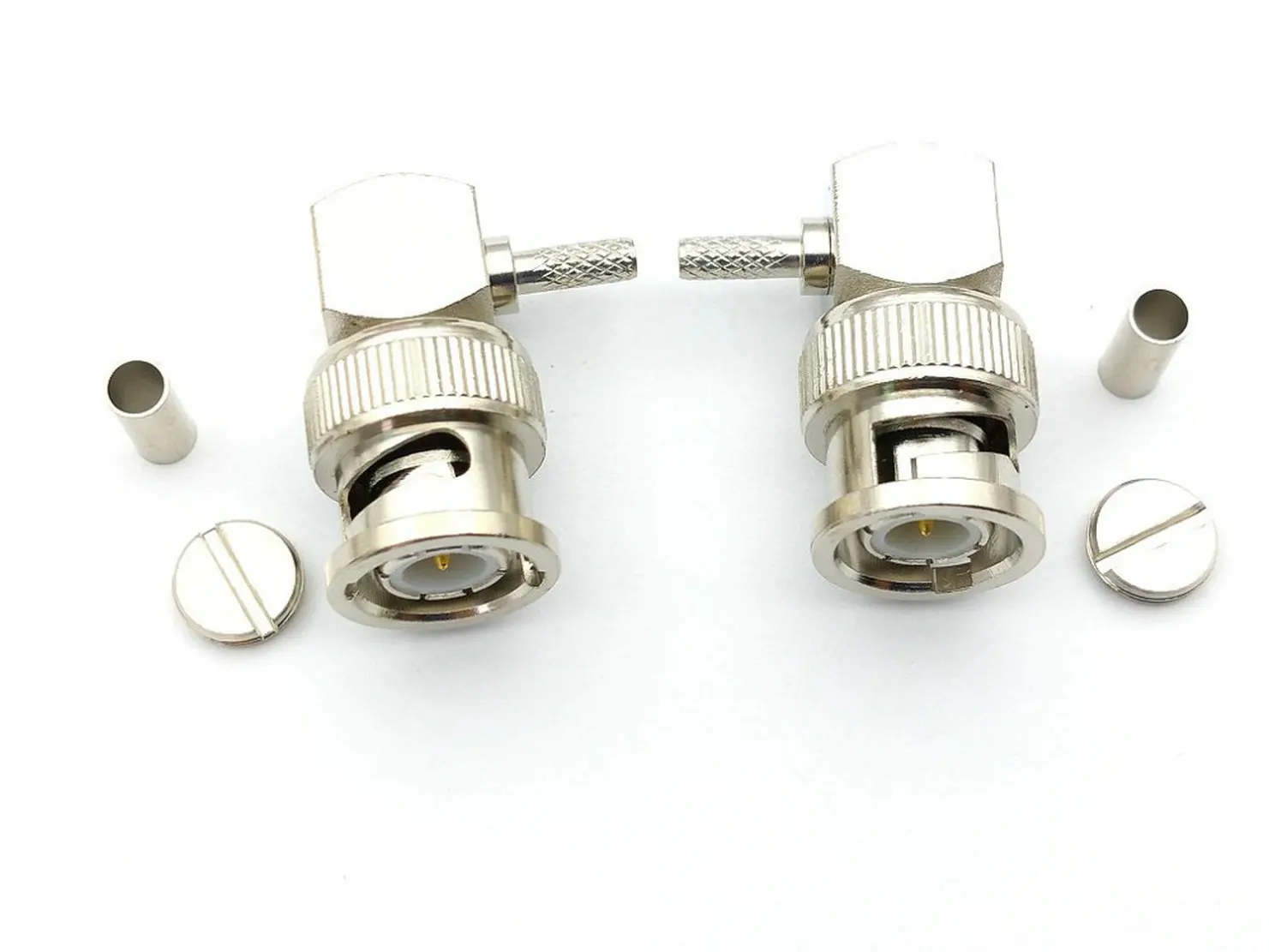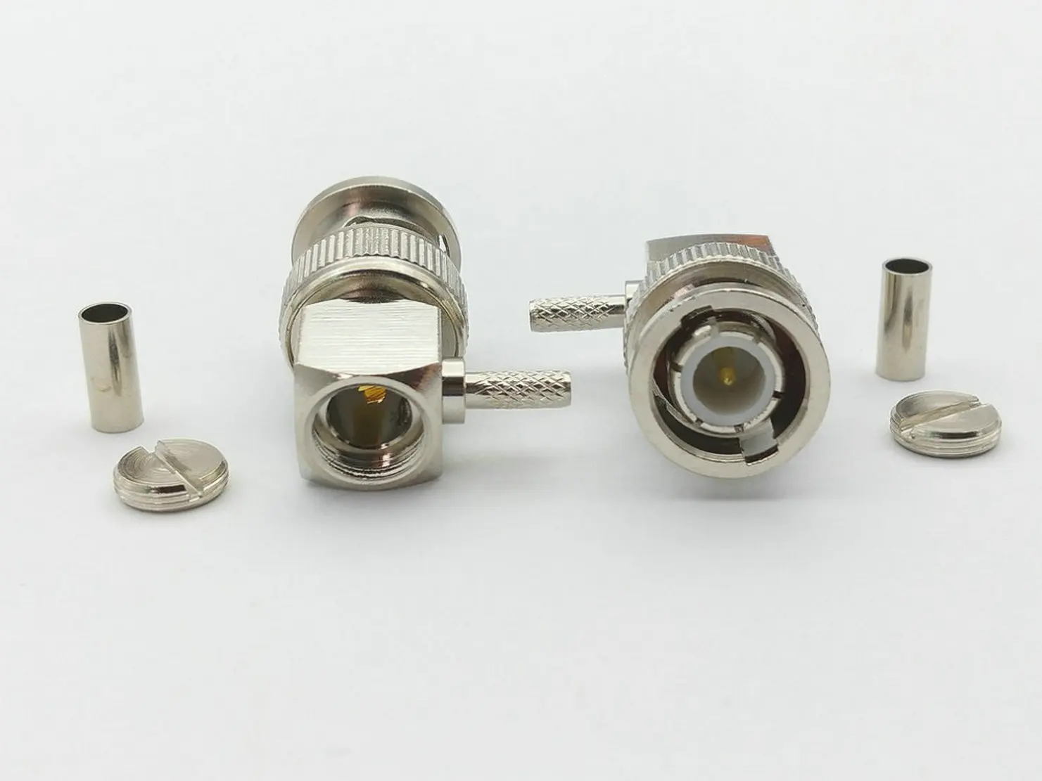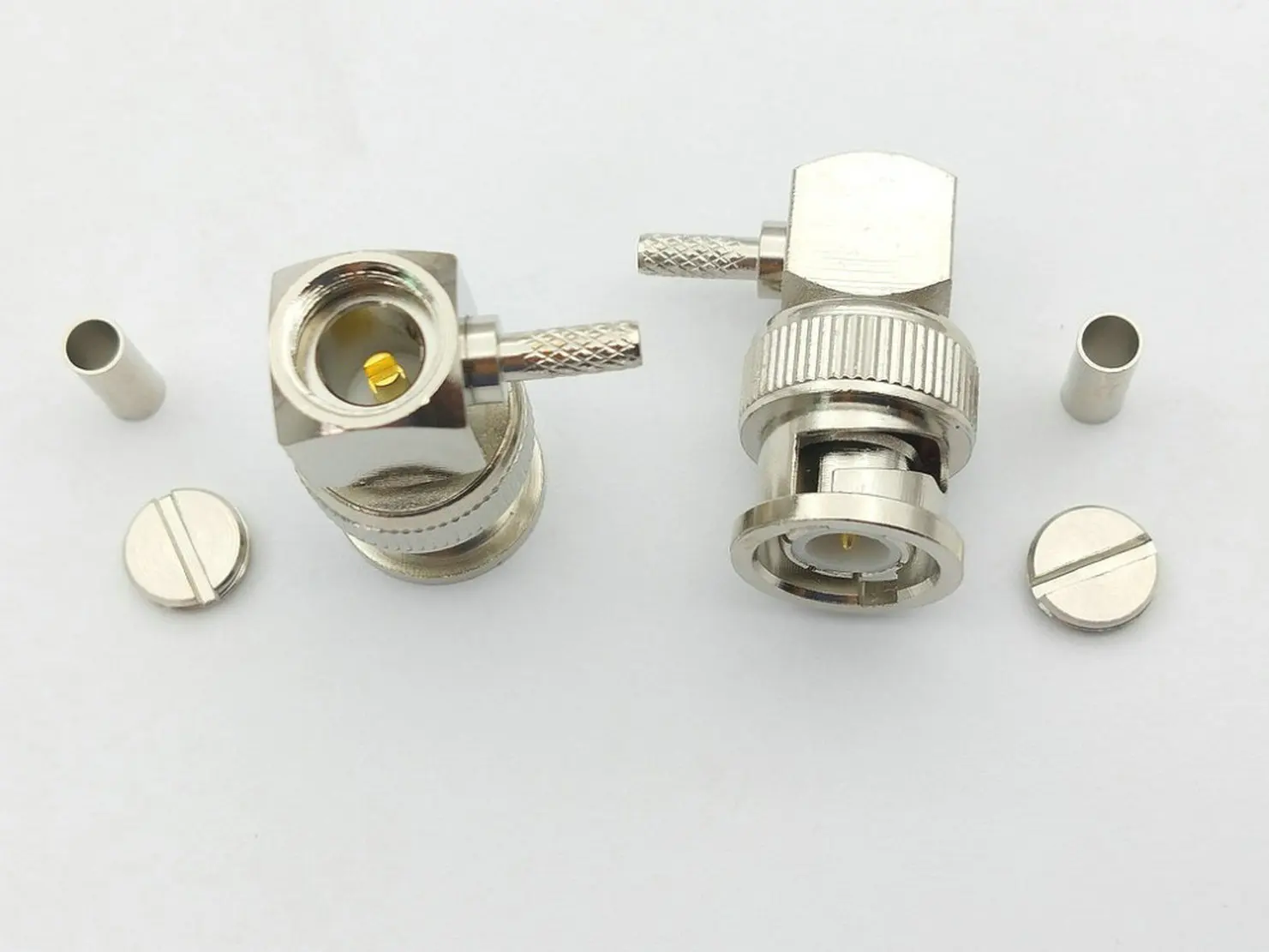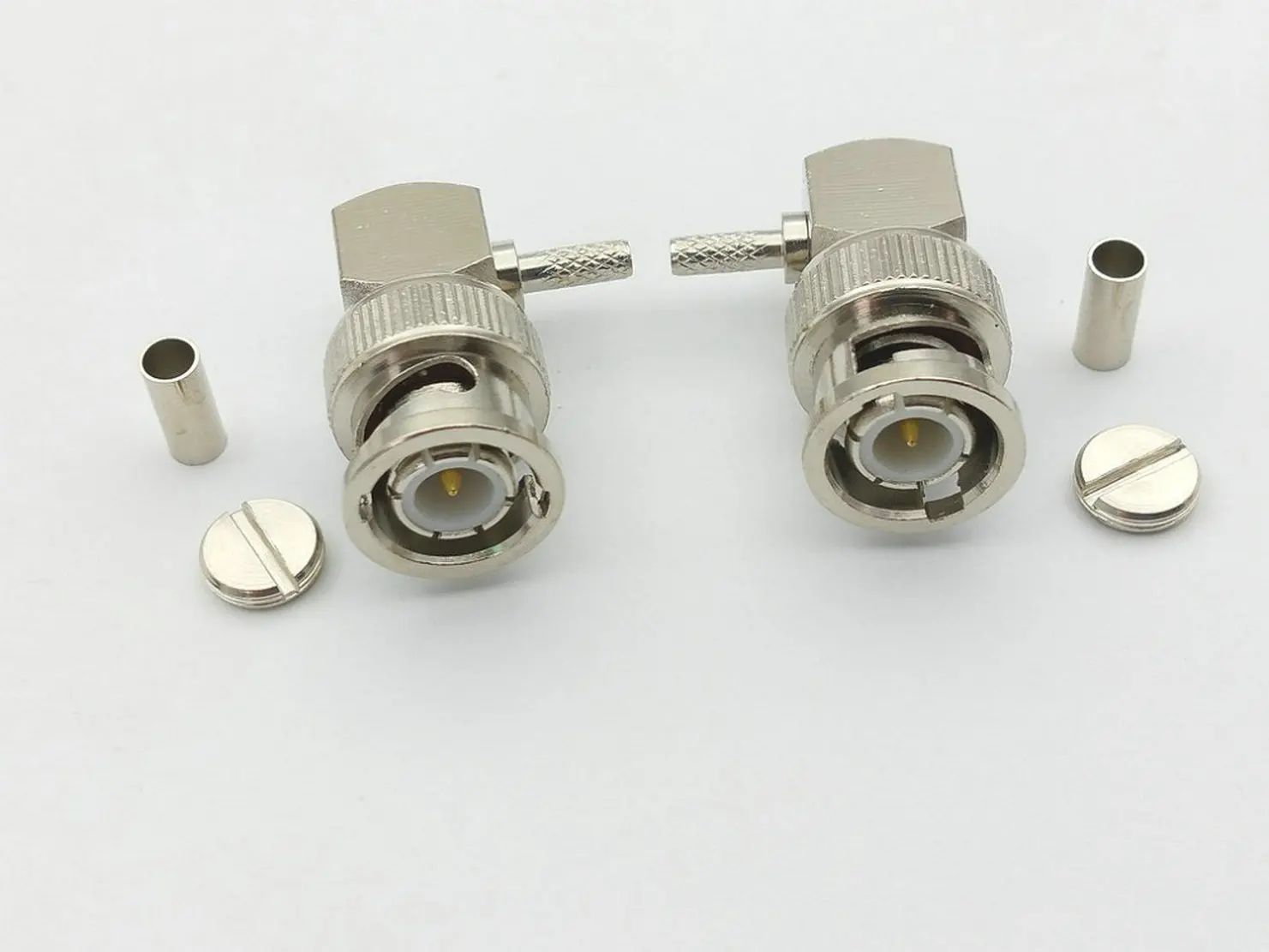 Comprar Conectores de crimpado RF BNC de 50 ohmios, enchufe macho, ángulo recto para RG316, RG174, LMR100