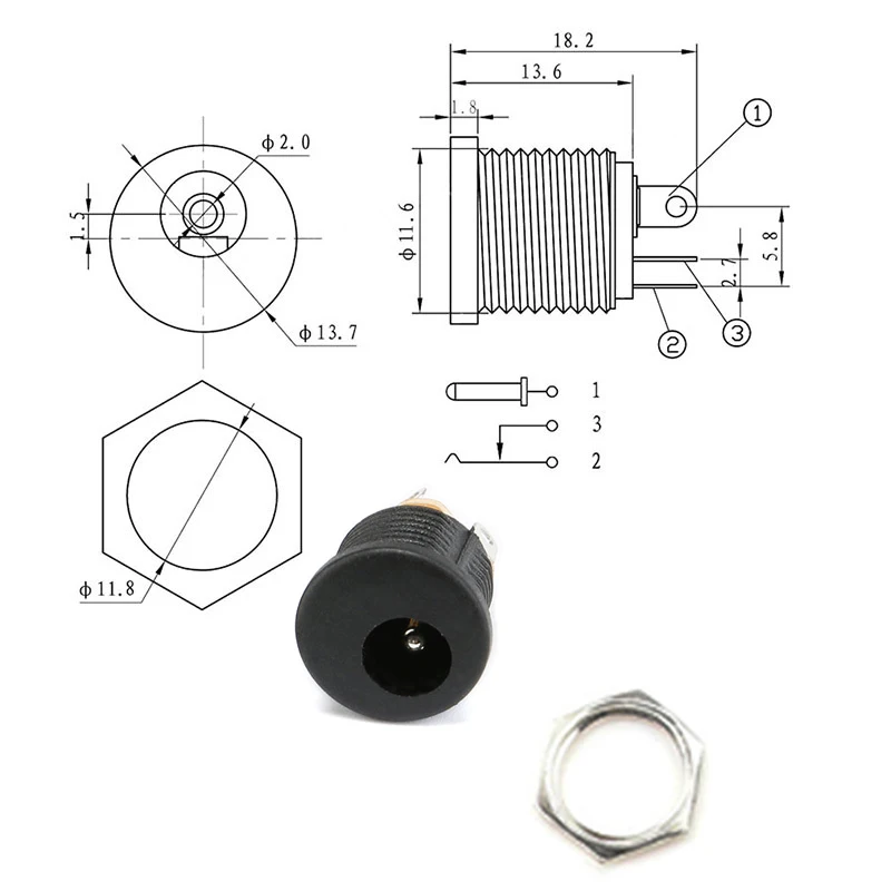 10 Uds conectores CC 5,5x2,1mm 3,5x1,3mm enchufe de alimentación CC macho hembra Jack tuerca montaje en Panel conector adaptador de corriente CC 5,5*2,1