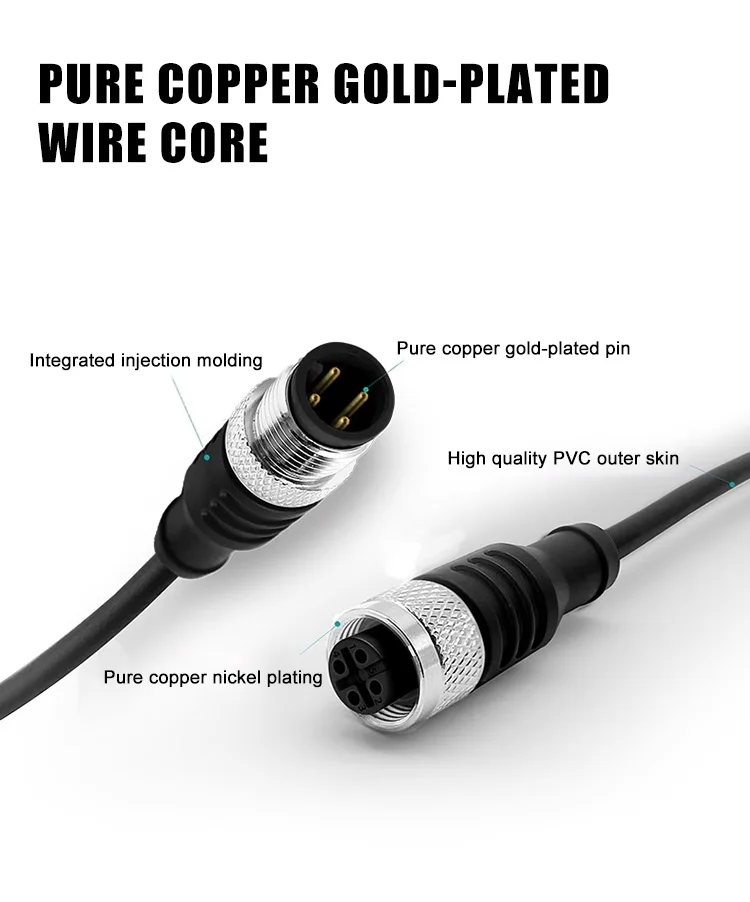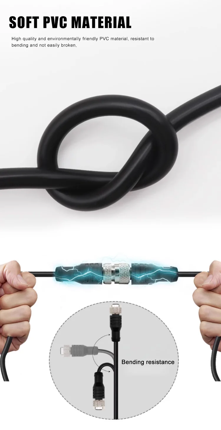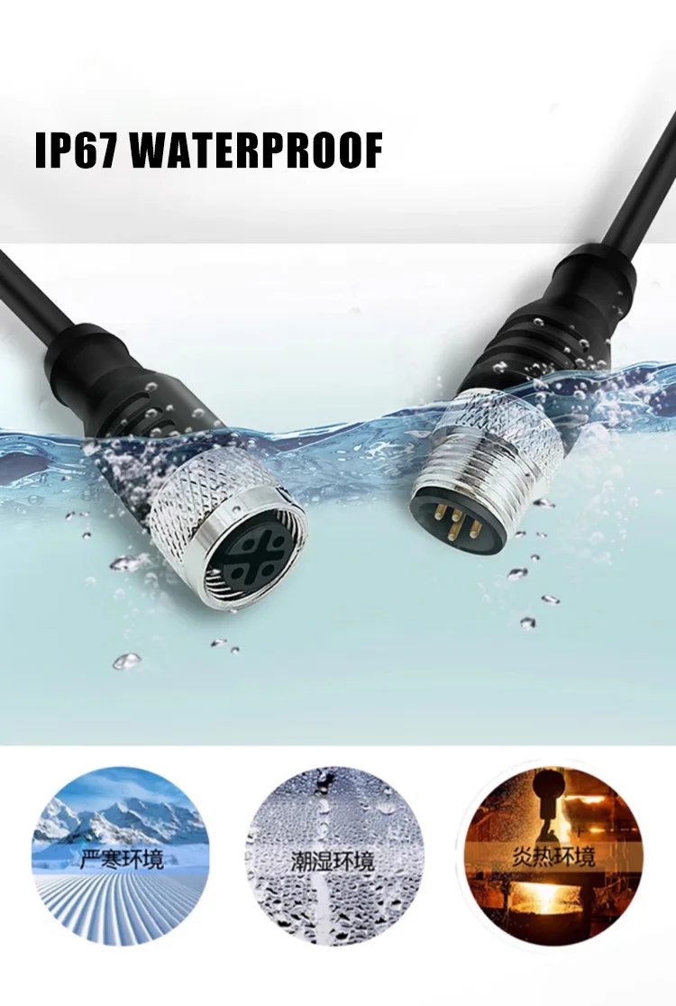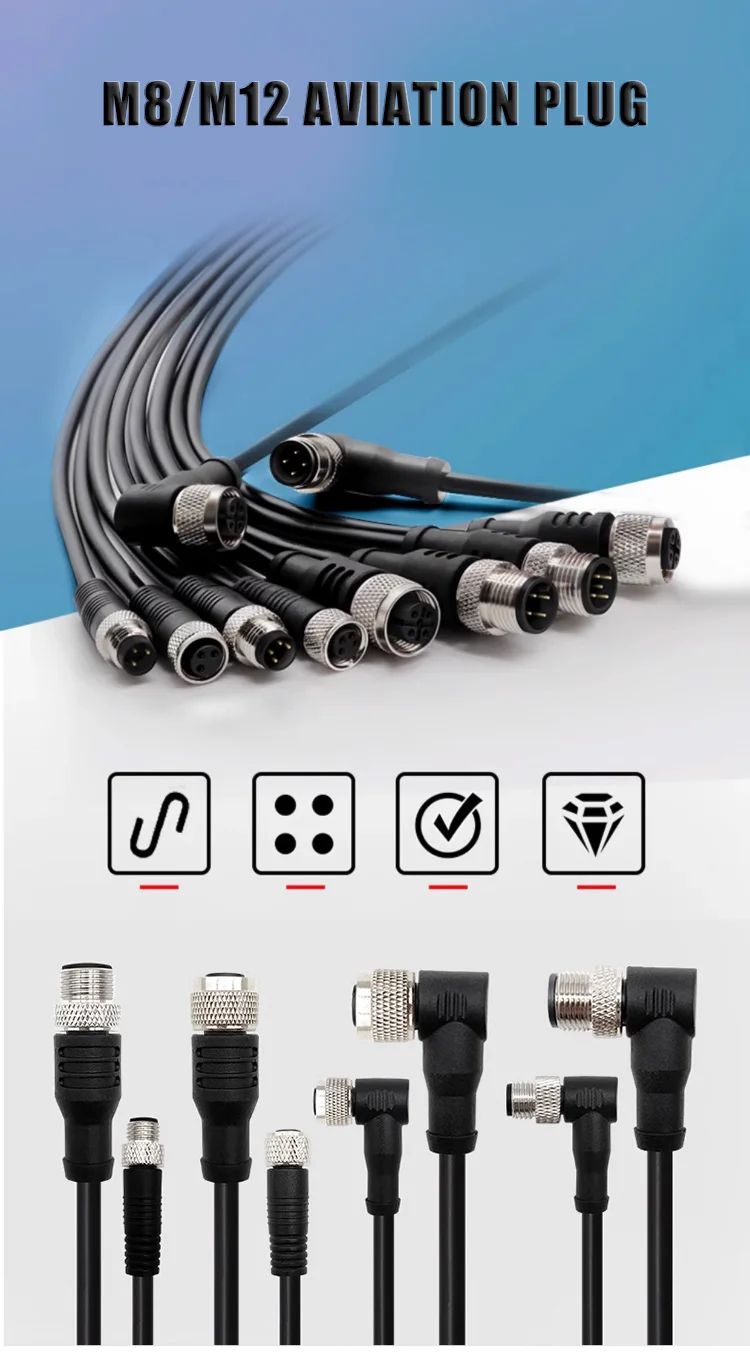 Conectores de enchufe de aviación M12 M8, Sensor impermeable de 3/4/5/8 pines, línea de tira macho hembra de 2/5/10/15/20M, línea de conexión de codo tipo A
