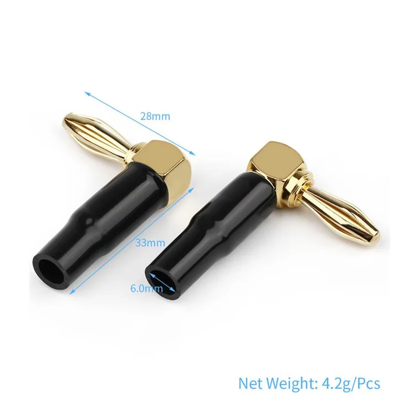 Comprar Conectores de enchufe Banana de ángulo recto, conector de Audio masculino Banano de 90 grados, electrónica de consumo, Terminal de altavoz chapado en oro, negro y rojo