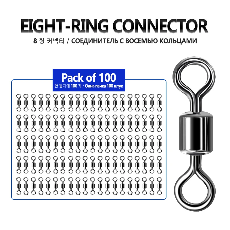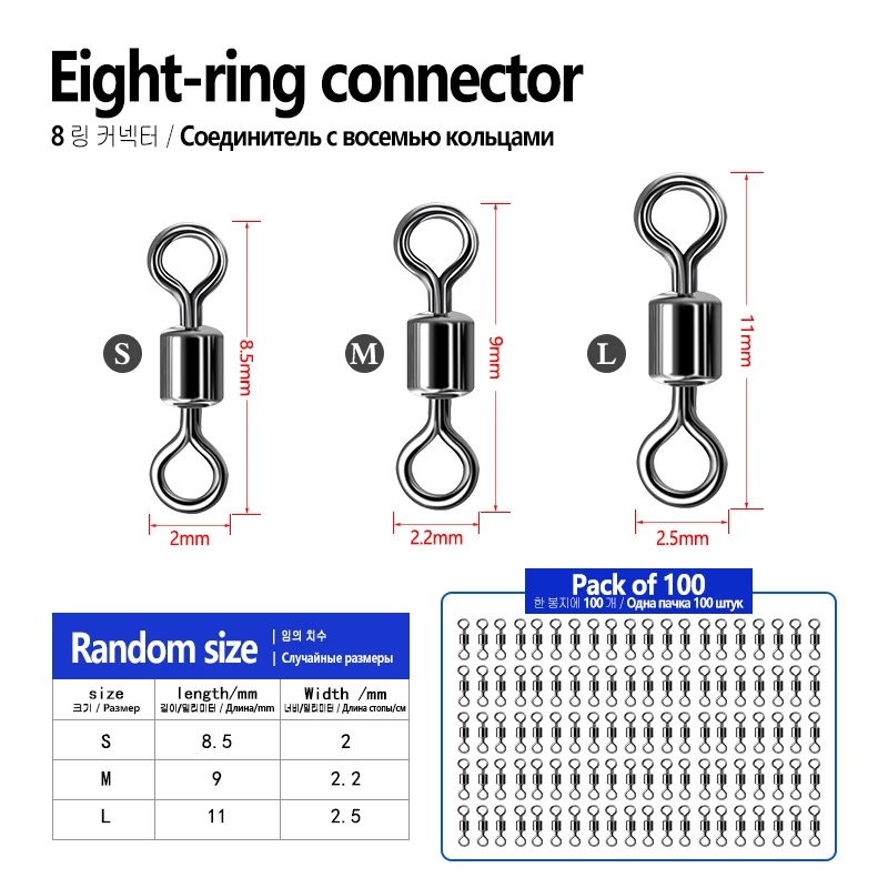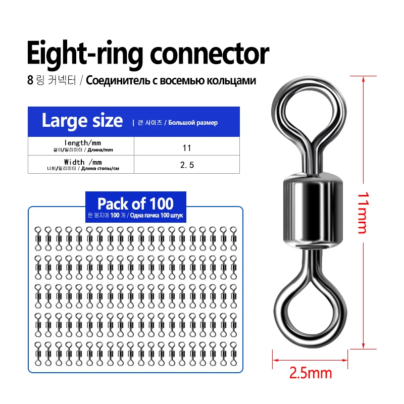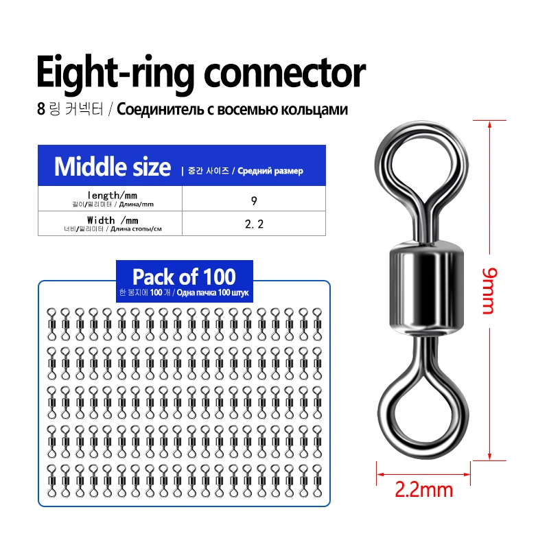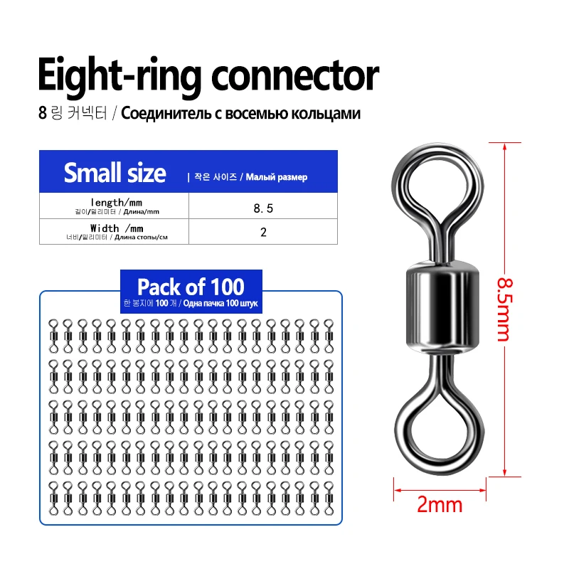 Anillo de 8 formas de acero inoxidable 100, herramienta de pesca de alta calidad, conectores giratorios para aparejos de pesca de carpa cruciana, herramientas