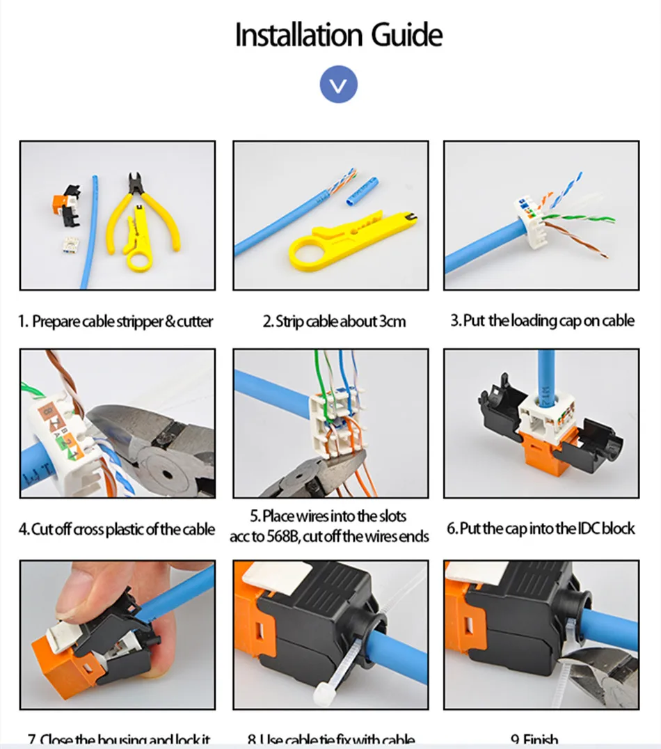 Comprar Conectores Keystone RJ45 Cat6, módulos de red, tipo Toolless, Crimping Gigabit Ethernet, adaptador colorido de 10 piezas
