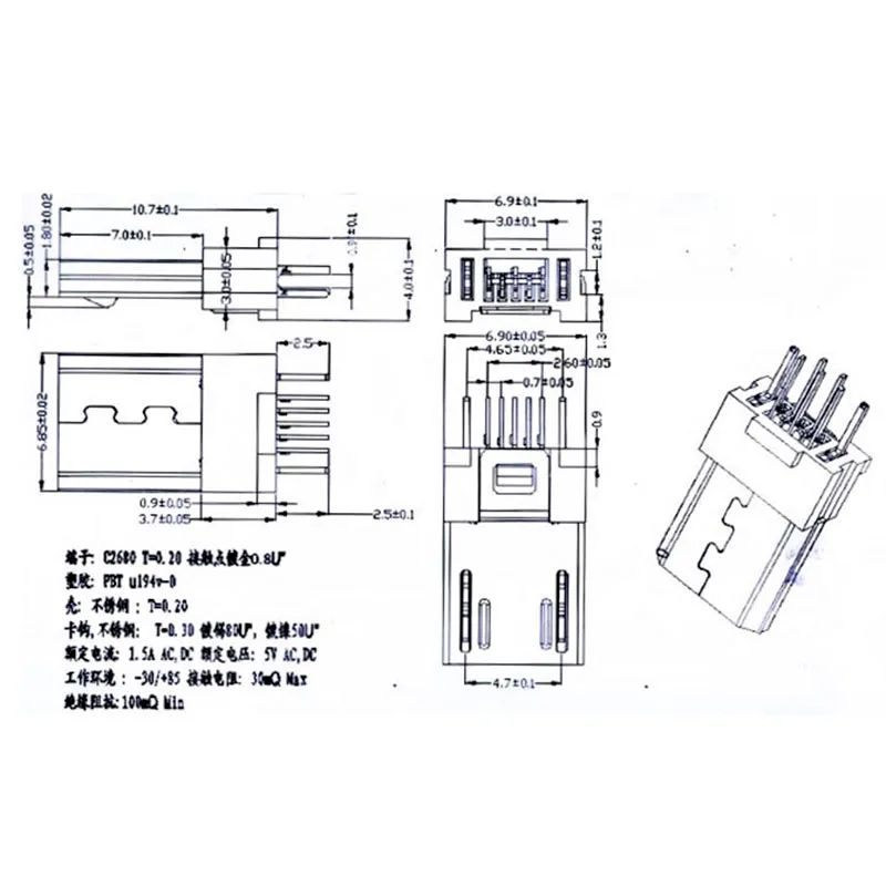 Comprar Conectores macho Micro USB de 5 pines, conector Vertical, terminales eléctricos, 5V, 1,5 a, 10 unidades por lote
