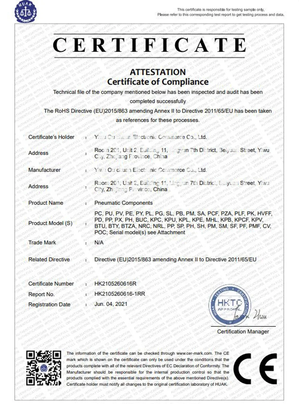 The retaining ring has good elasticity, insertion and pull-out resistance.