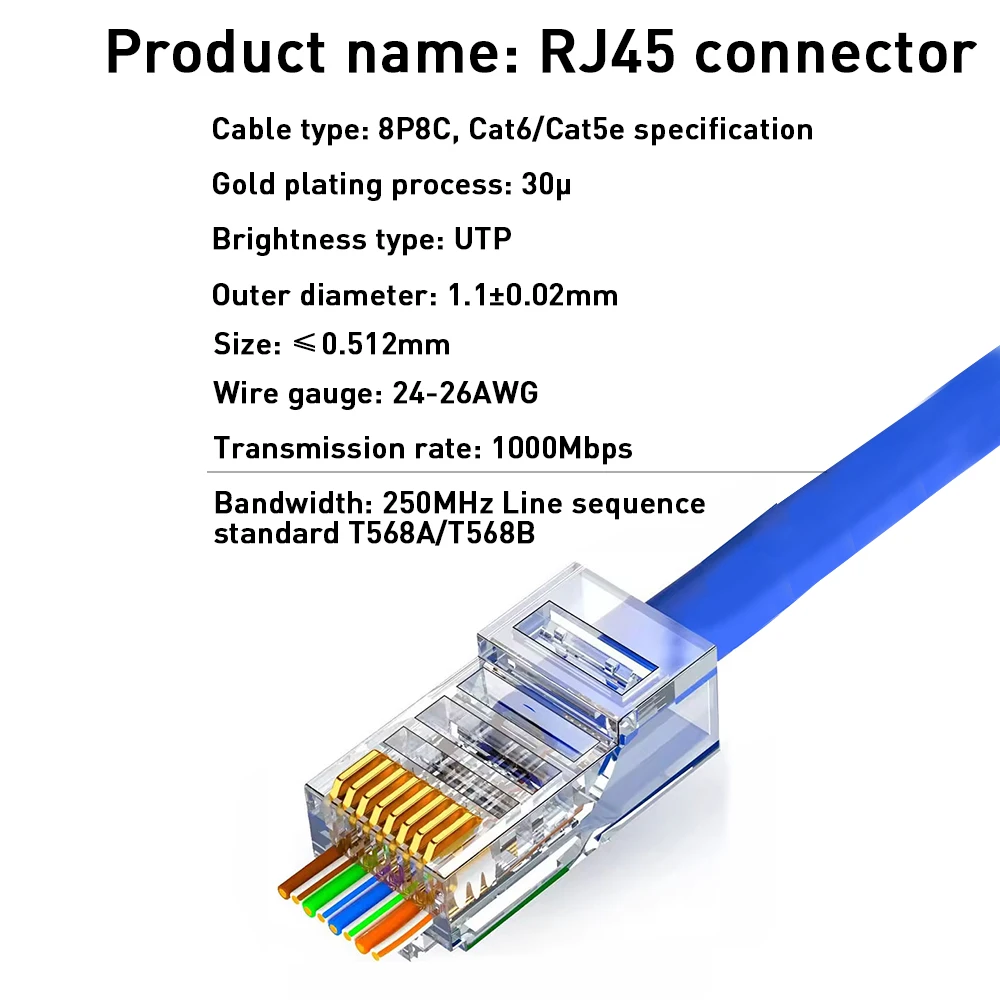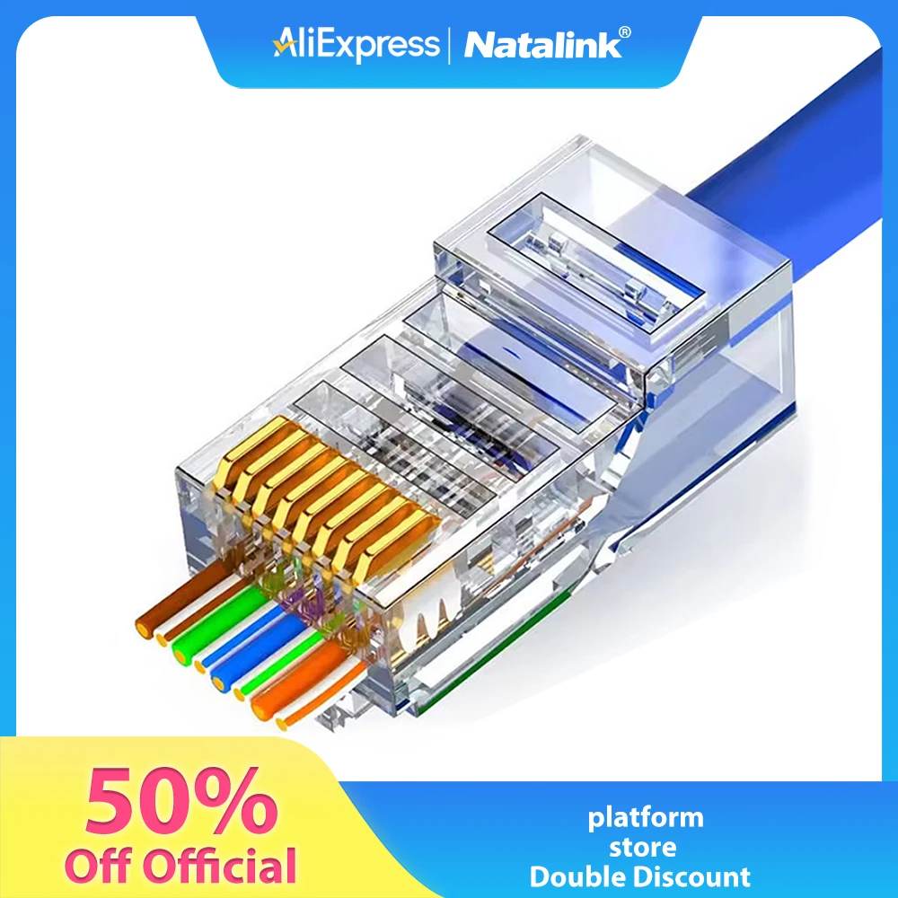Comprar Conectores de paso Natalink RJ45 CAT6, extremos de cristal de 30μ, enchufes modulares de red Ethernet UTP 8P8C UTP chapados en oro para CAT6 CAT5e