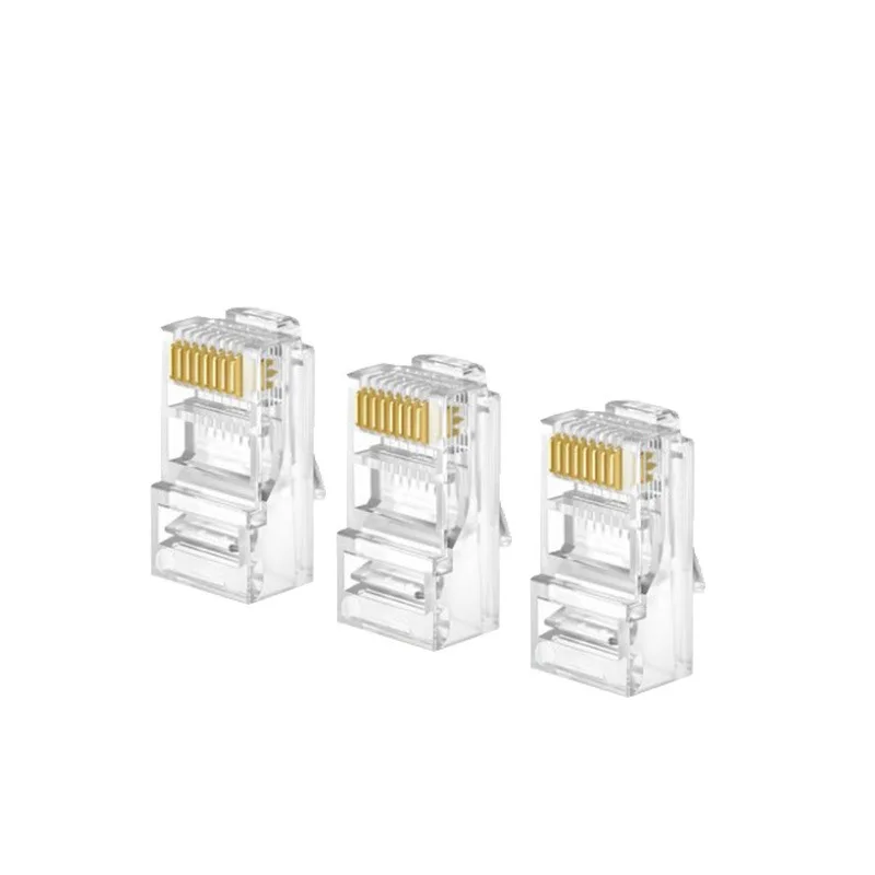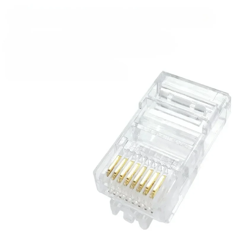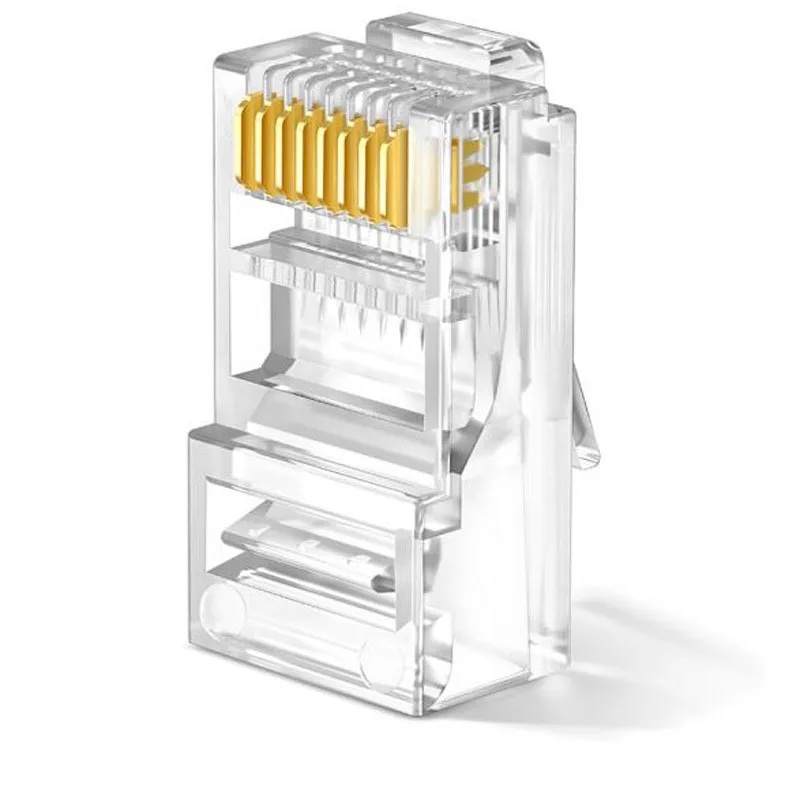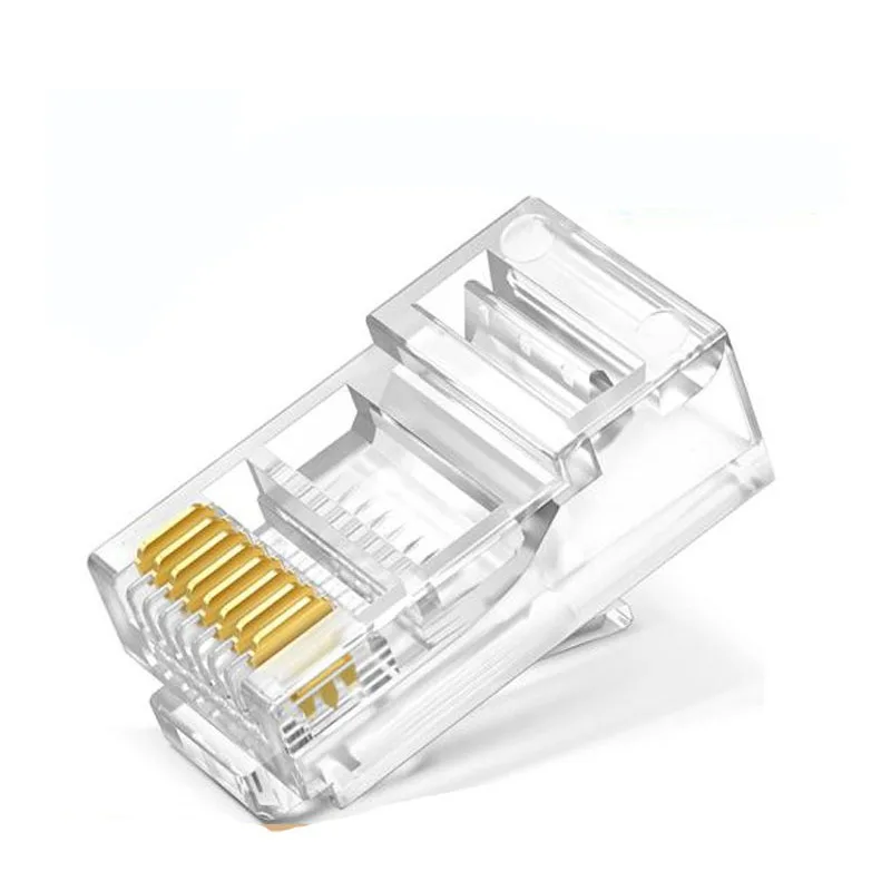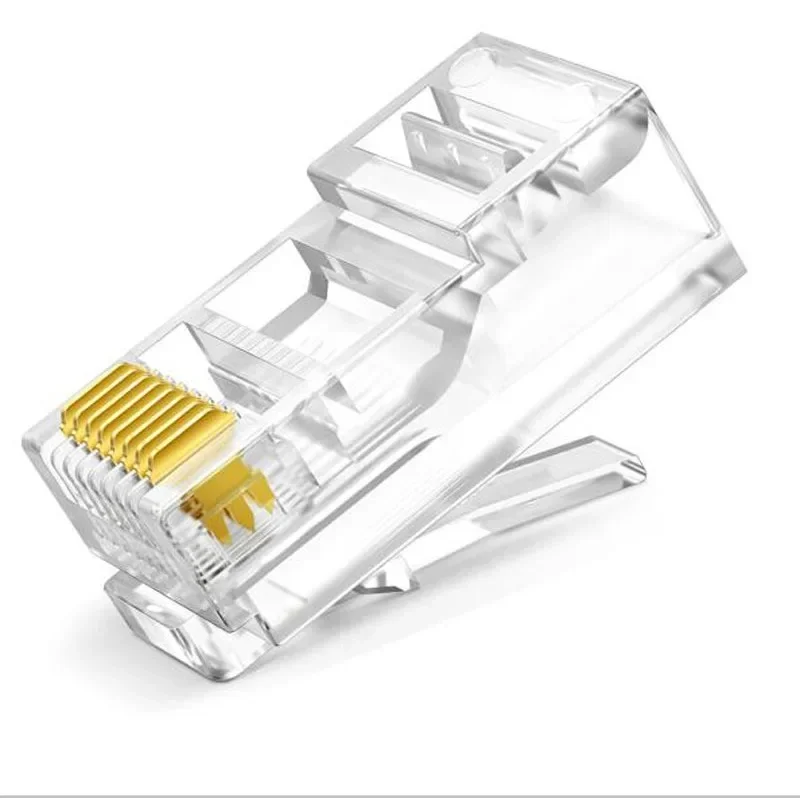 Conectores RJ45 de paso de 50/100, extremo de cristal chapado en oro 8P8C Crimp UTP, enchufe Modular de red Ethernet estándarDescripción: