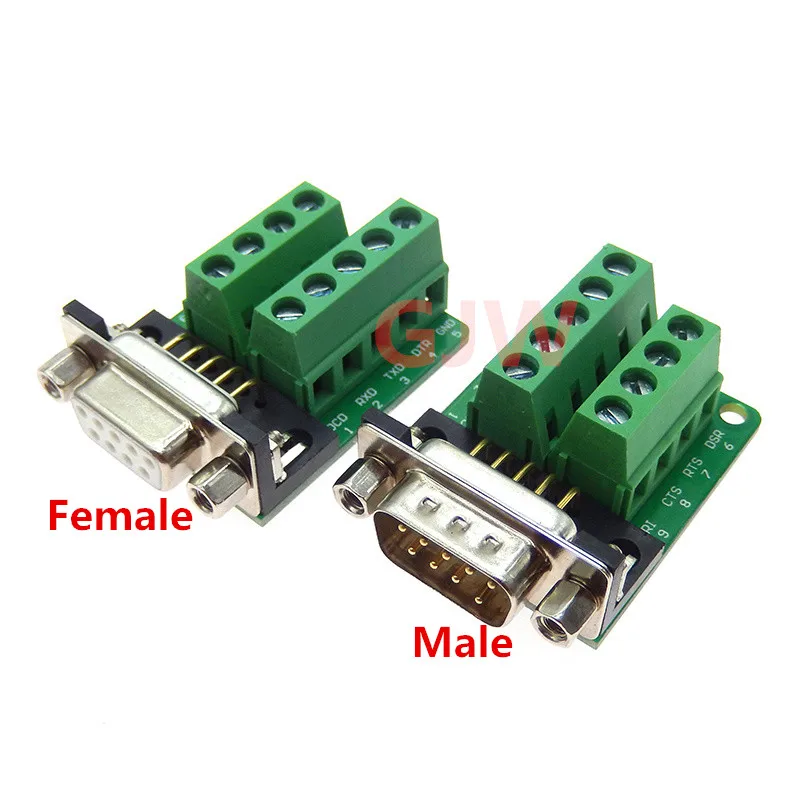 Comprar Conectores sin soldadura DB9 RS232, adaptador de serie a Terminal macho hembra, placa de ruptura, negro y verde, d-sub, 9 pines, 1 piezas