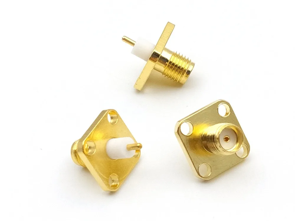 Comprar Conectores de soldadura de cobre, oro, SMA PTFE hembra con 4 bridas con agujeros 100 Uds