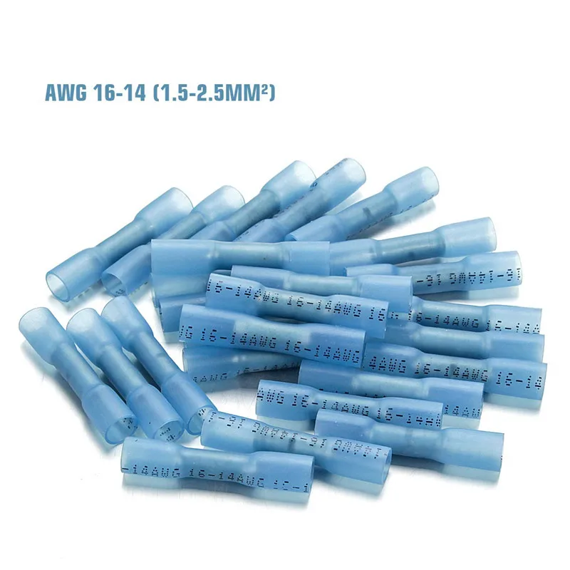 Conector termorretráctil aislante para automóvil, cable impermeable azul, AWG 16-14, 1.5-2.5 mm2, terminales de cable, 20/30/50 unidades