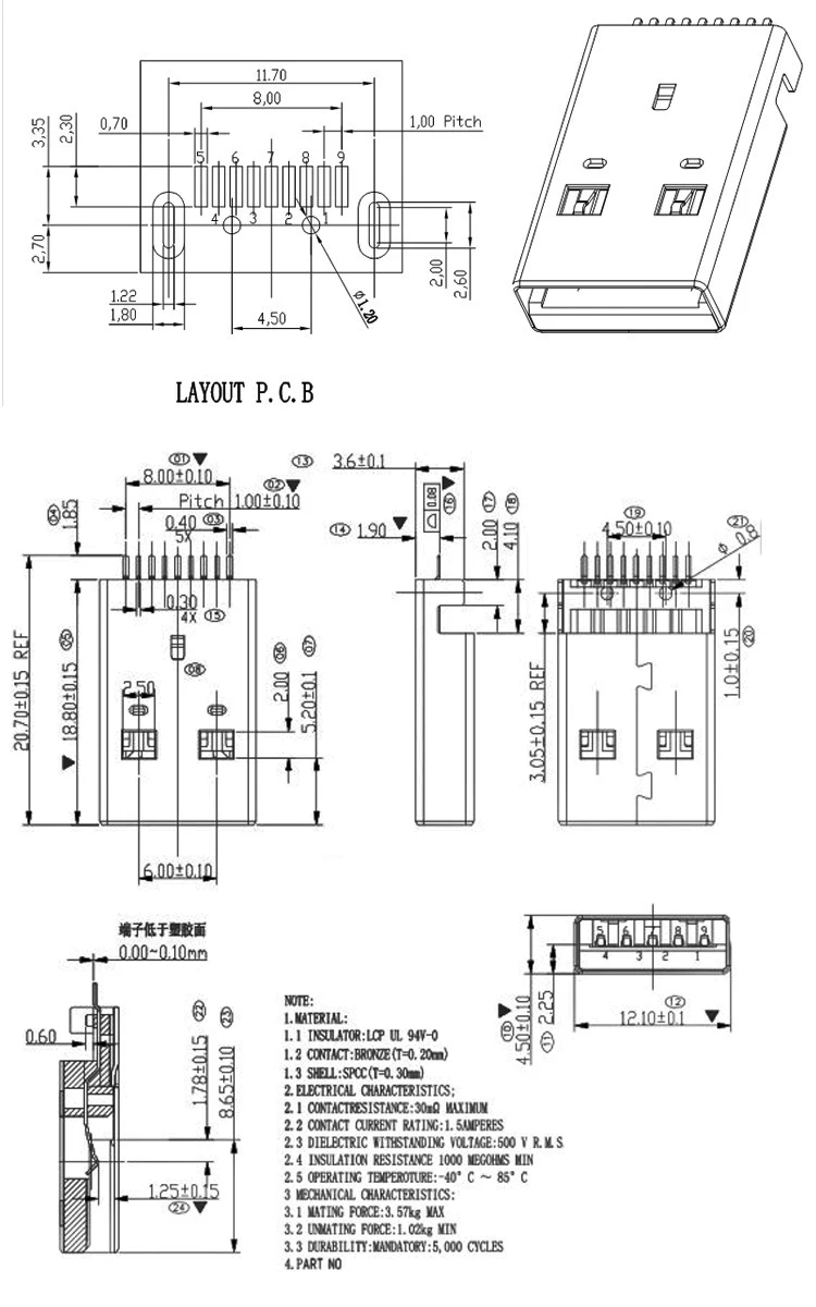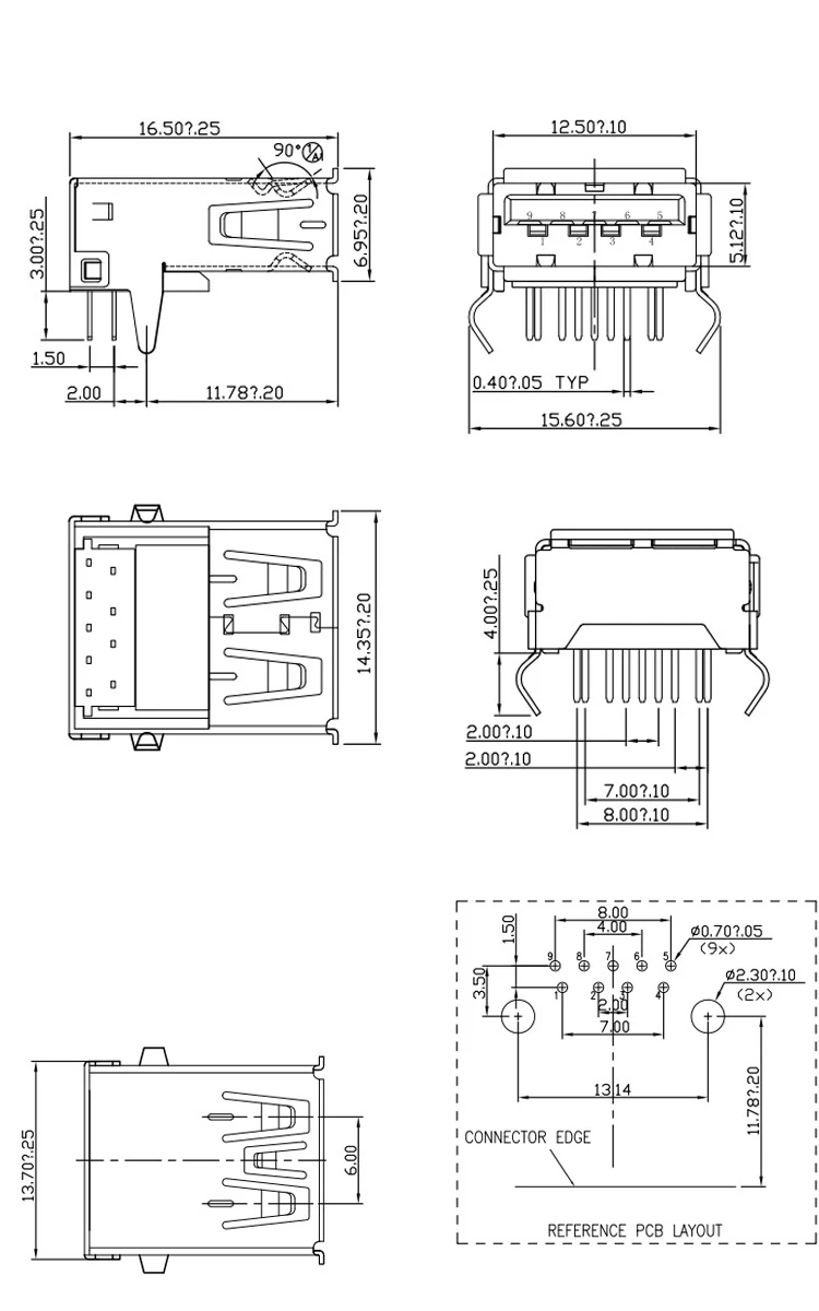 Comprar Conectores USB 3,0 tipo A hembra tipo AF, inserción lateral de 90 grados, microconector de interfaz de alta velocidad de 180 grados, 5 uds.