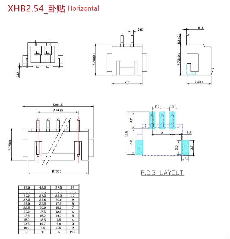 Conectores XHB2.54, carcasa de plástico con hebilla de 2,54mm, 2P, 3, 4, 5, 6, 7, 8, 9, 10 pines, 20 unidades
