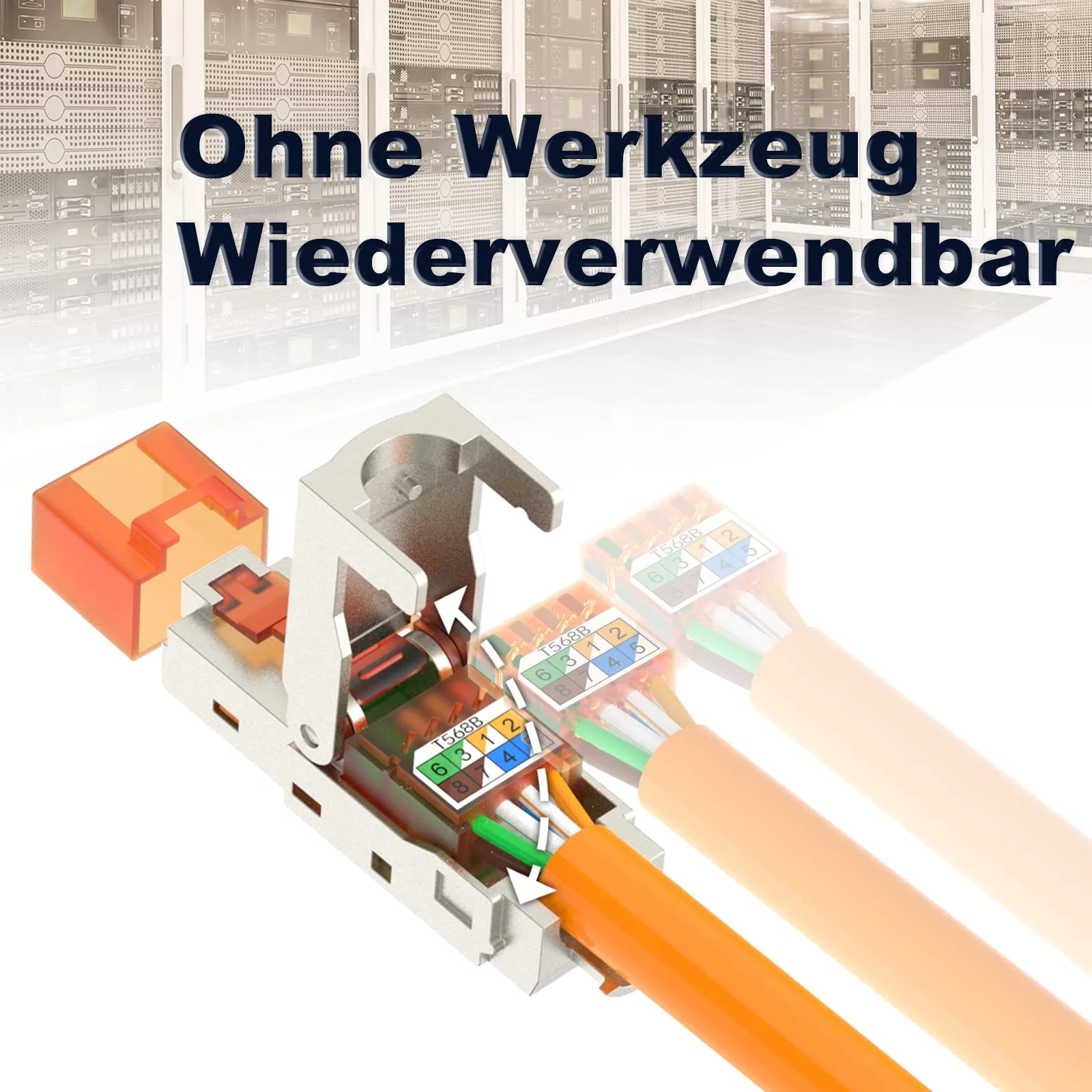 Easy to Use and Reusable: Cat8 Cat7 Cat6a connectors are Toolless designed for easy assembly, And can assemble many times which could save you time.IDC modules can be wired for T568A or T568B configurations. Clear color coding to facilitate installation.f you want to lay the thick network cables and do not have a crimping tool, for which these tool-free network connectors from LEENUE are ideal.