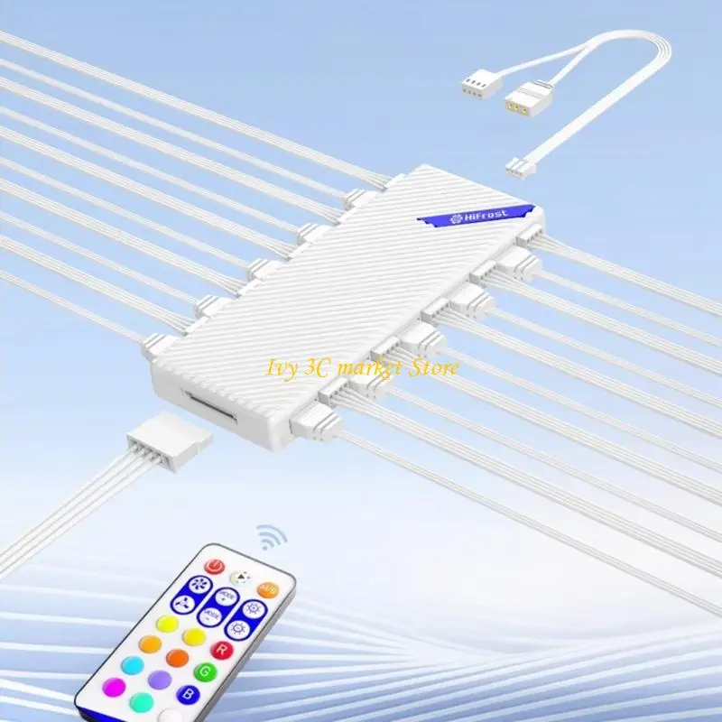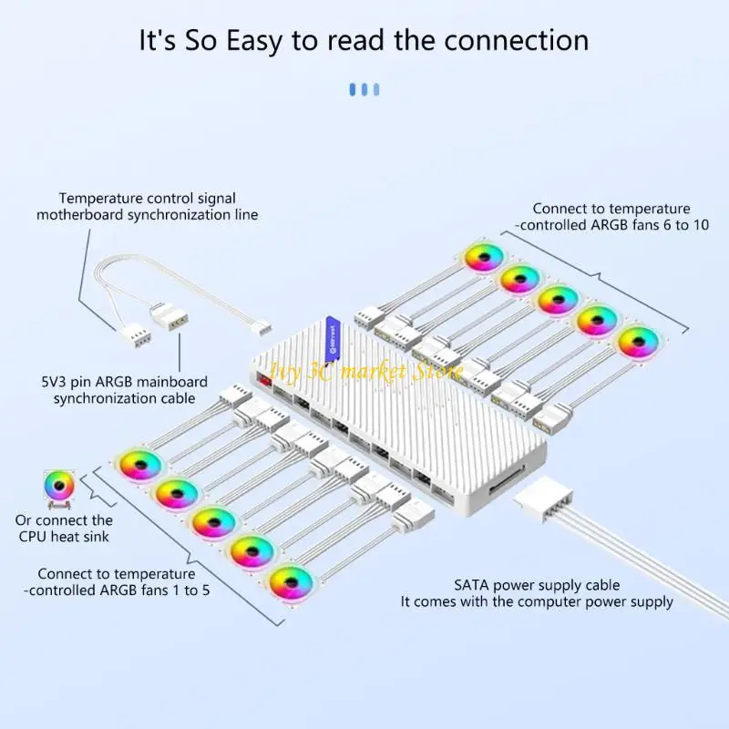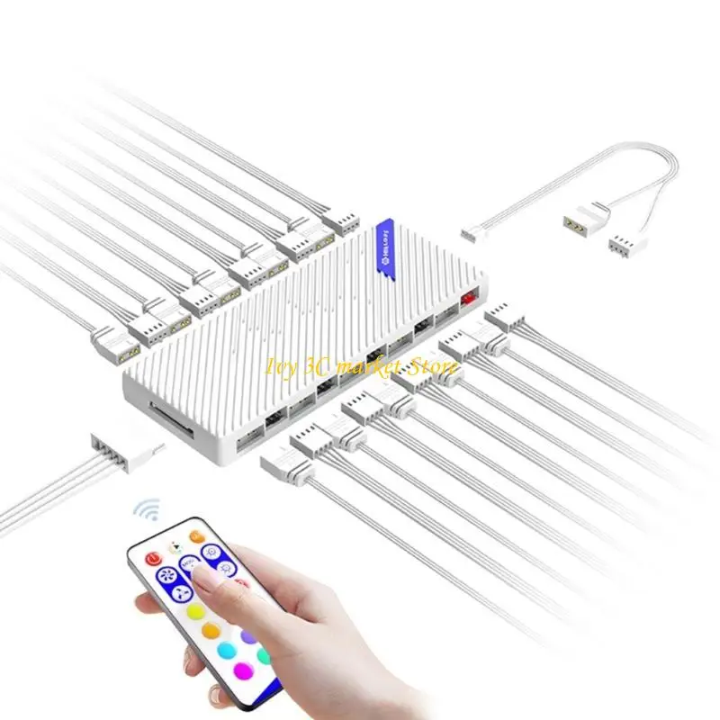 Características:OOTDTYAdmite control ARGB, fuente de alimentación fácil de 5 V y 3 pines, concentrador de conexión de múltiples ventiladores, conveniente y práctico.