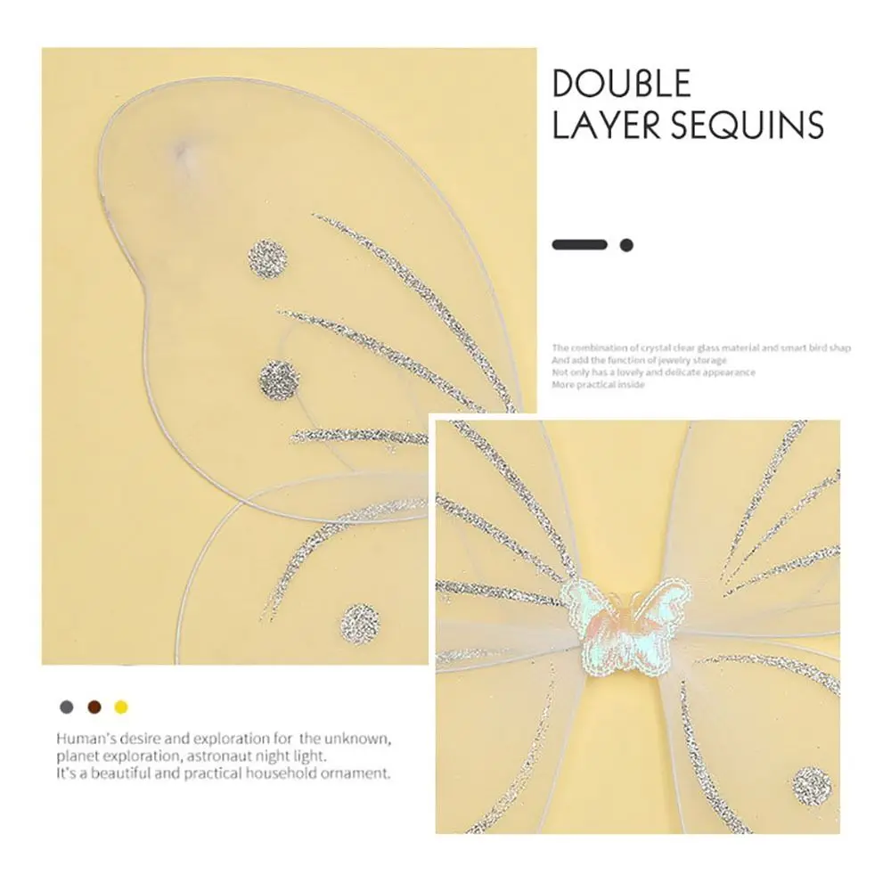 Comprar Conjunto de 3 diademas de mariposa para niños, varita de alas, traje de fotografía de verano para niñas, accesorios de cuento de hadas amarillo, verde, morado y rosa