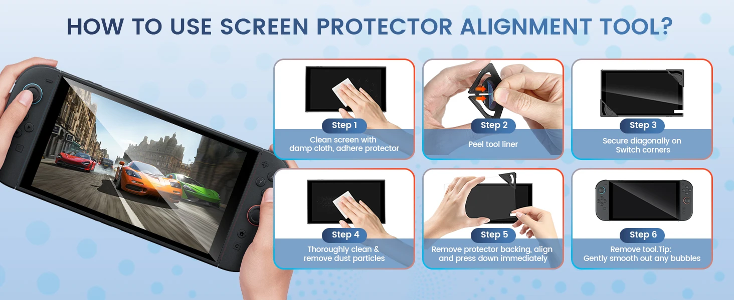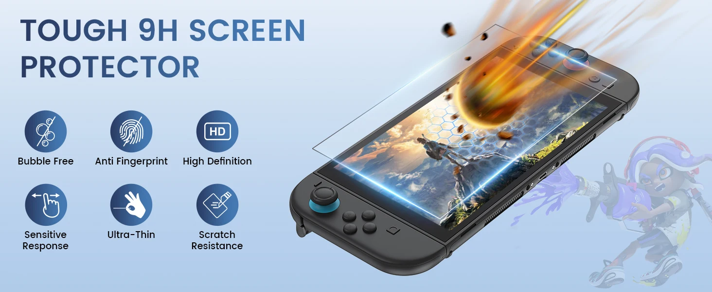 【Kit de protector de pantalla ultratransparente para Nintendo Switch 2】 Logre 99,9% de transparencia y visualización natural con dos protectores de pantalla Switch 2 de vidrio templado 9H, diseñados para una sensibilidad táctil impecable y una máxima resistencia a rayones y impactos.El revestimiento repelente al aceite probado en laboratorio evita el 99,99% de las manchas de huellas dactilares manteniendo la claridad.Completo con herramientas de alineación, paño de microfibra y pegatinas antipolvo para una instalación sin burbujas, brindando una precisión visual ininterrumpida durante un juego intenso.