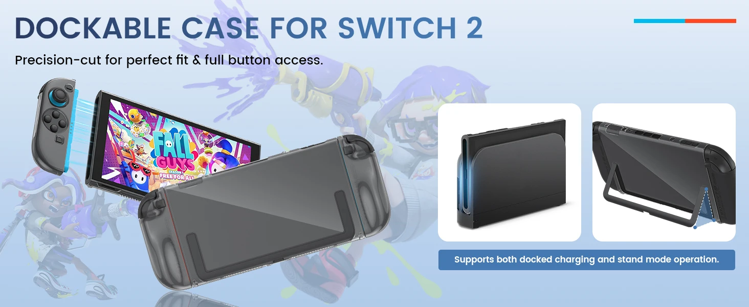 【Cubierta protectora para Nintendo Switch 2】Esta funda para Switch 2 protege tu consola Switch 2 de caídas y rayones.Todos los puertos siguen siendo completamente accesibles mientras que la construcción ergonómica mejora la comodidad del agarre.Cuenta con un marco de PC a presión para la consola + fundas flexibles de TPU para Joy-Cons, que se adaptan a la mayoría de los estuches de transporte para Switch 2 como accesorios esenciales para Nintendo Switch 2.