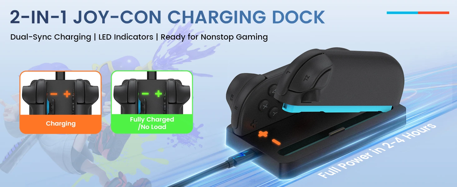 【Estación de carga Joy-Con dual】Encienda dos Joy-Cons Switch 2 simultáneamente con carga rápida Joycon: ¡juego sin esperar!Simplemente insértelo en los puertos de carga para obtener energía instantánea.El chip IC inteligente evita el sobrecalentamiento, mientras que la estructura compacta de ABS + aluminio con base antideslizante se mantiene estable en cualquier lugar.¡Nunca interrumpe el juego!Exclusivamente compatible con los modelos Switch 2 (2025), no con Switch 1/OLED.Nota: Las consolas/Joy-Cons que se muestran en las imágenes son solo accesorios de demostración, no incluidos.