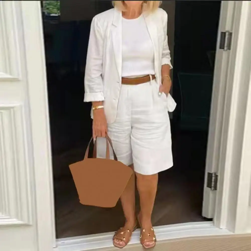Comprar Conjunto de chaqueta y pantalón corto para mujer, Blazer holgado de cintura alta, con solapa, 1 unidad