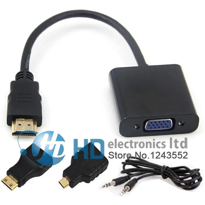 Comprar Conjunto de chips de 1080P integrados, Adaptador convertidor de HDMI a VGA con Cable de Audio, Micro Mini HDMI a VGA para Xbox 360, PS3, PS4, PC y DVD