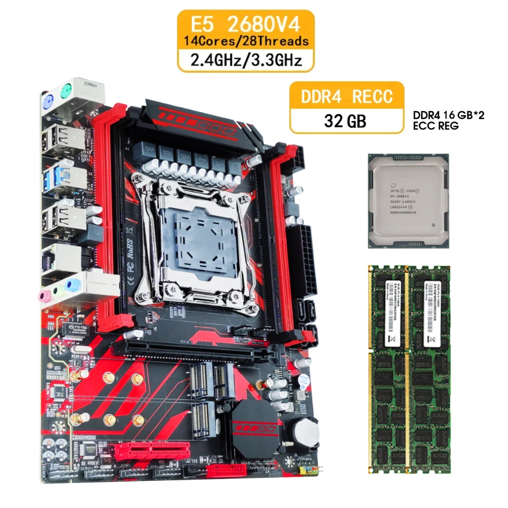 Comprar Conjunto Combinado de placa base X99 con procesador de CPU Xeon E5 2680 V4, memoria RAM REG ECC, DDR4, 32GB, 2X16GB, 2133MHz