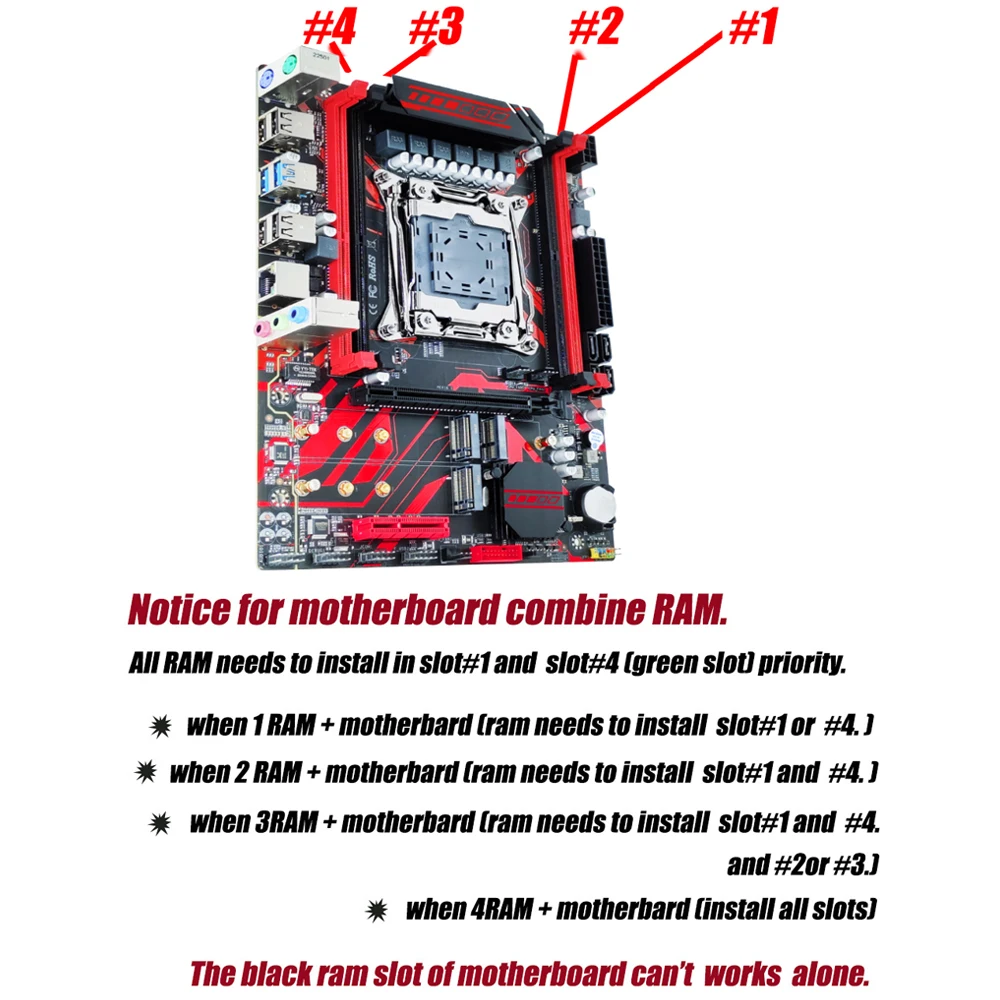 Debido a los diferentes lotes de producción, la placa base X99 puede tener un diseño ligeramente diferente, como diferentes colores de ranuras de memoria o posición de puertos SATA o versión de placa base, etc. Nuestro objetivo es hacerla gradualmente más potente.