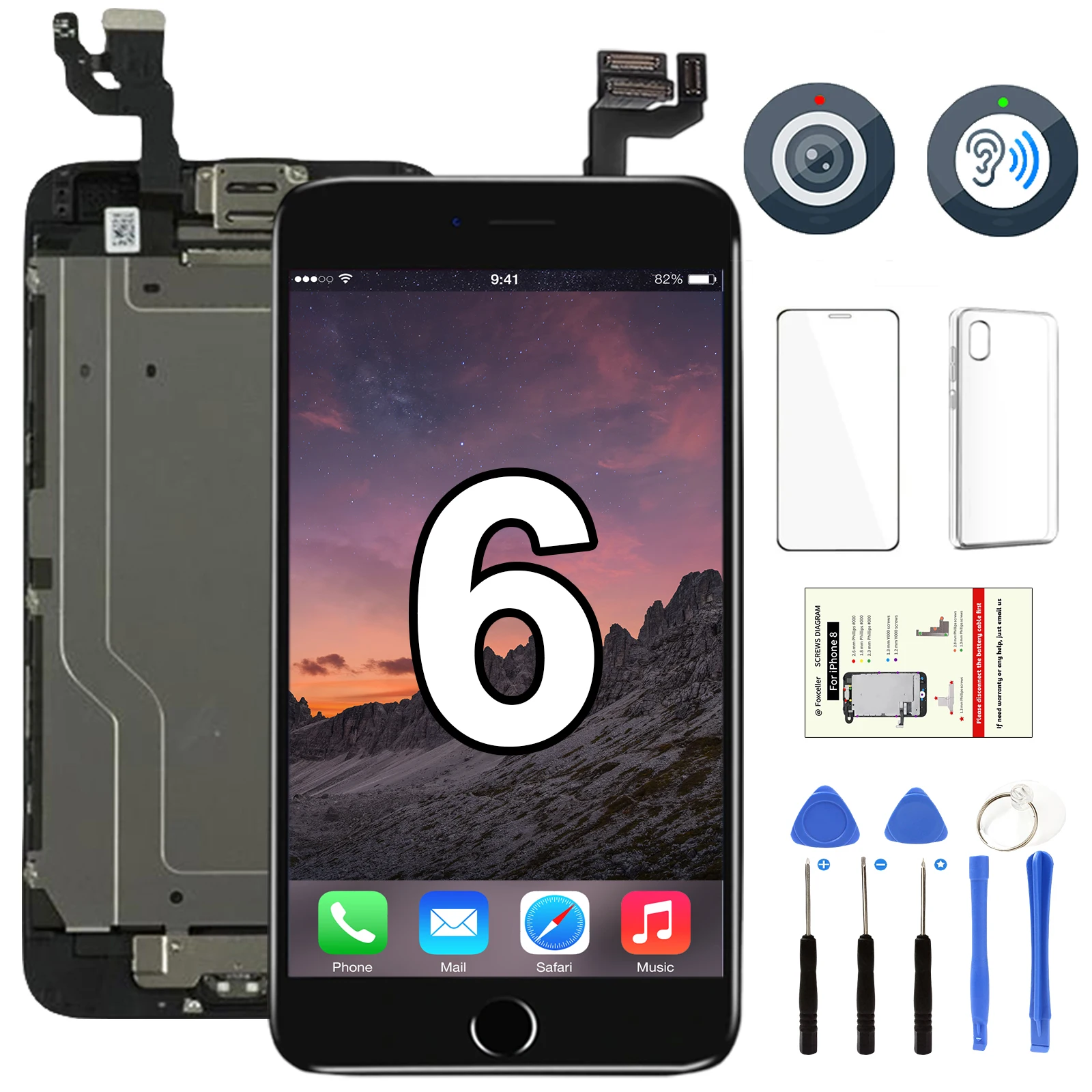 Comprar Conjunto completo de pantalla para iPhone 6 6G, pantalla LCD de repuesto, digitalizador táctil, montaje completo, Ecran + botón de inicio + cámara frontal A1549