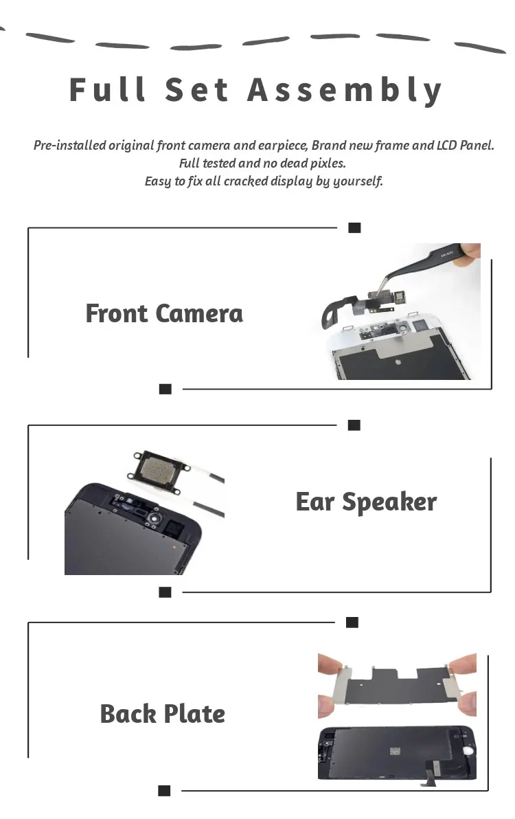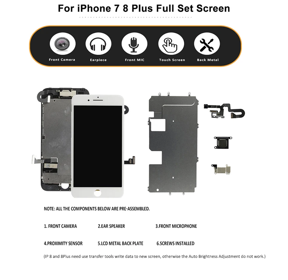 Comprar Conjunto completo de pantalla para iPhone 7 8 Plus SE 2020 7P 8P SE2, Kit de reemplazo de pantalla LCD, montaje de digitalizador táctil + cámara frontal + altavoz