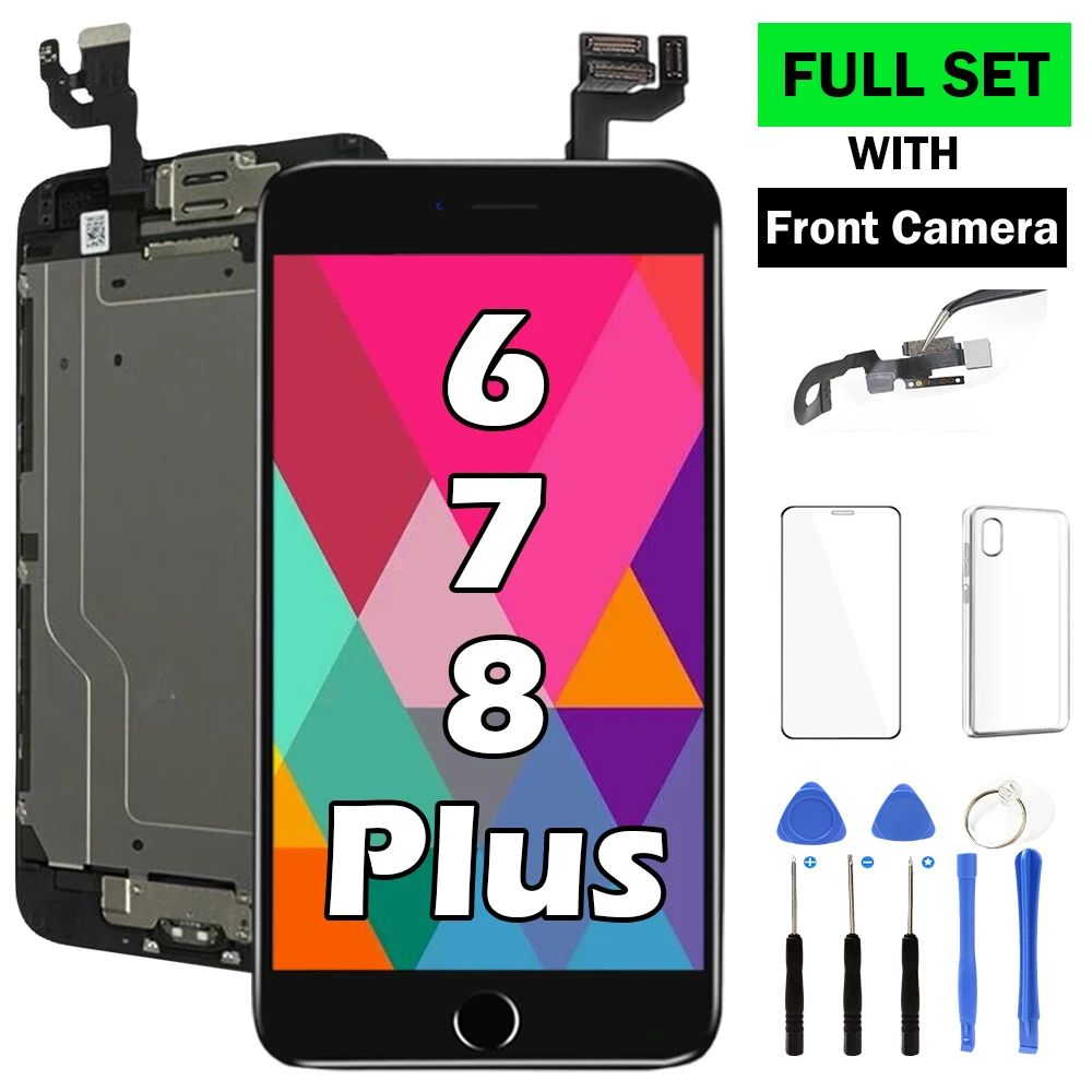 Para Apple iPhone 2, 6, 6S, 7, 8 Plus, 7P, 8 P, conjunto completo de pantalla LCD, reemplazo completo de pantalla táctil, montaje de digitalizador + cámara frontal