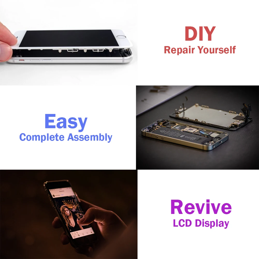 Comprar Conjunto completo de pantalla LCD para móvil, montaje de digitalizador táctil y cámara frontal para Apple iPhone 5S, 6, 6S, 7, 8 Plus, 7P, 8 P