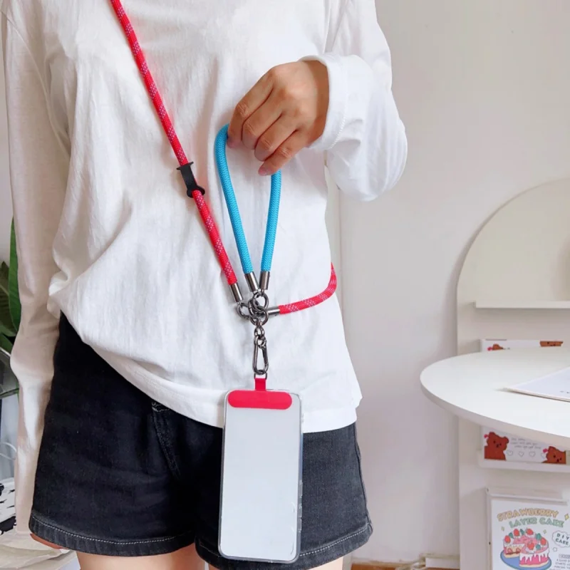 Conjunto de correa de muñeca con cordón de nailon, funda cruzada antipérdida multifuncional para teléfono, cordón ajustable para el cuello con Clip de fijación seguro