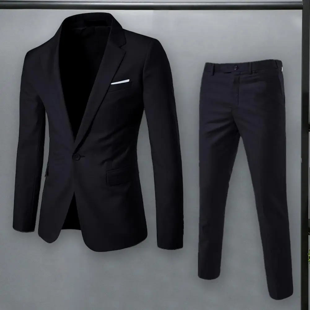 Conjunto de pantalones para hombre, elegante conjunto de traje de negocios para hombre, abrigo ajustado con solapa, pantalones largos para ropa de trabajo, ocasiones formales, traje ajustado