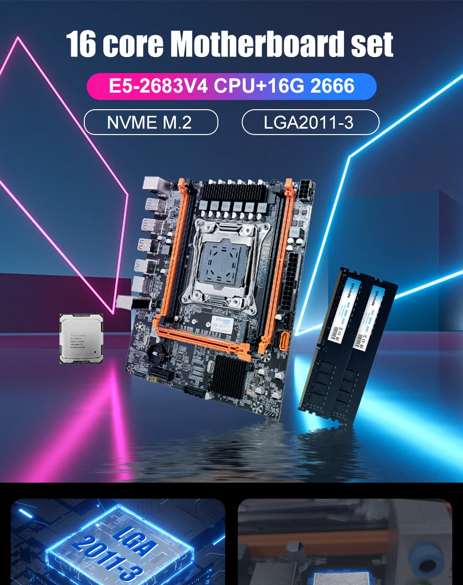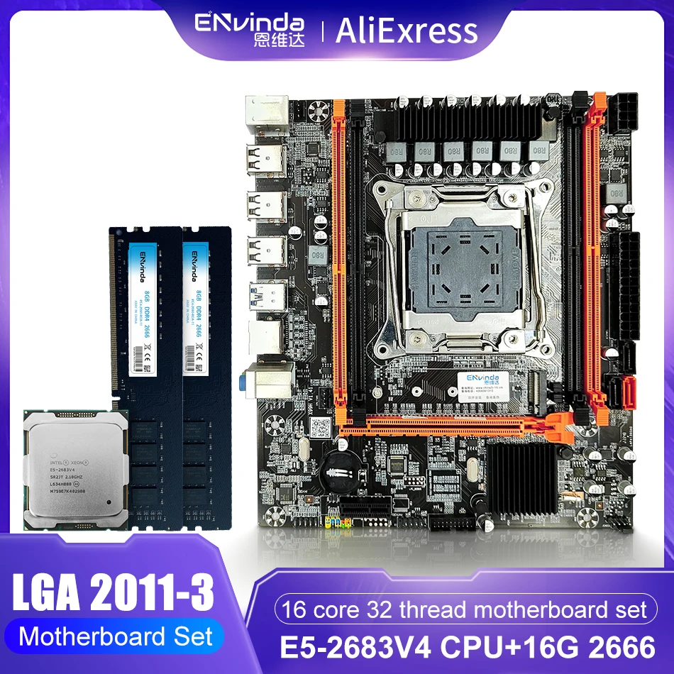 Comprar Conjunto de placa base D4 DDR4 con Xeon E5-2683 V4, CPU de LGA2011-3, 2x8GB = 16GB, 2666MHz, memoria RAM de escritorio, serie X99 Xeon