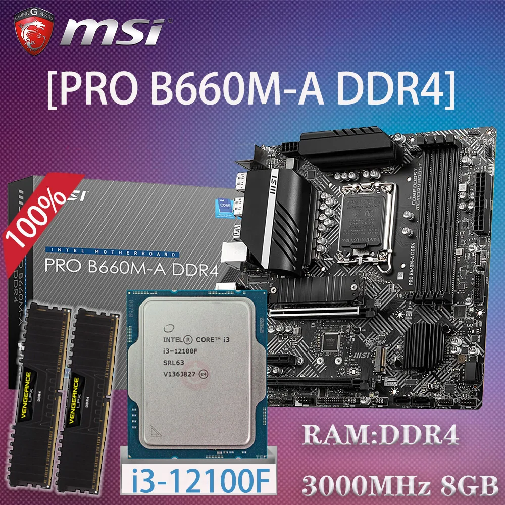 Comprar Conjunto de Placa base LGA 1700 MSI B660M-A DDR4, Combos + Intel Core i3 12100F CPU + DDR4 3000MHz 8Gb 12th-Gen Intel B660, Kit de Placa base