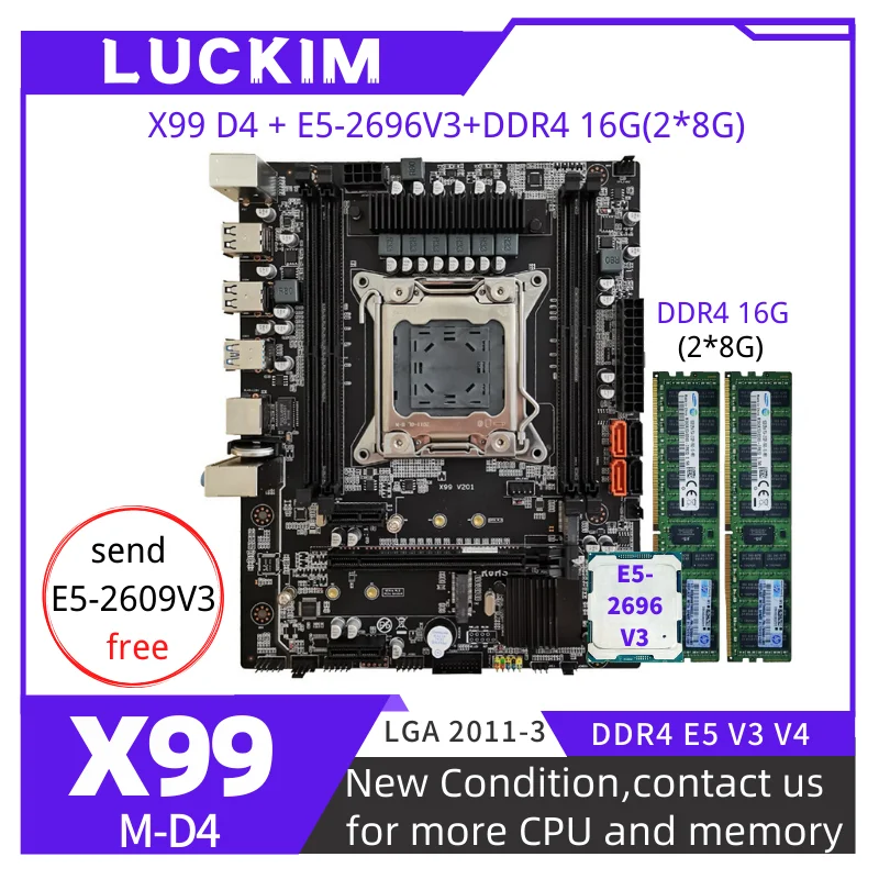 Comprar Conjunto de placa base X99 D4 LGA2011-3, CPU Xeon E5-2696V3, 16GB(2x8G), 2133MHZ, DDR4, M-ATX de memoria de escritorio NVME M.2