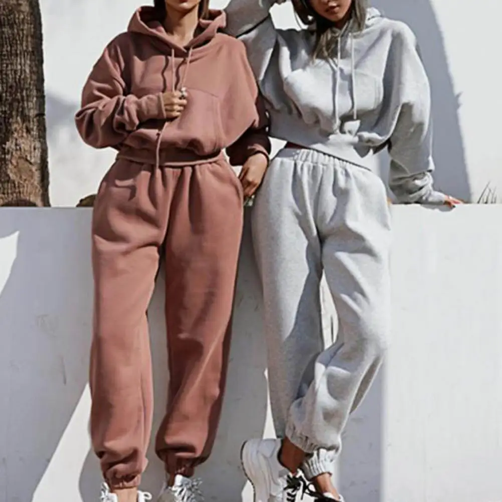 Comprar Conjunto de sudadera con capucha y pantalones para mujer, chándal de cintura elástica con bolsillo grande, mantiene el calor, moda de primavera e invierno