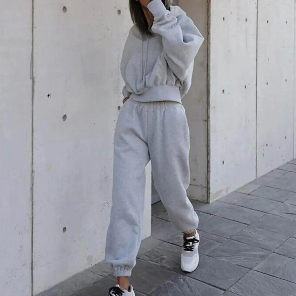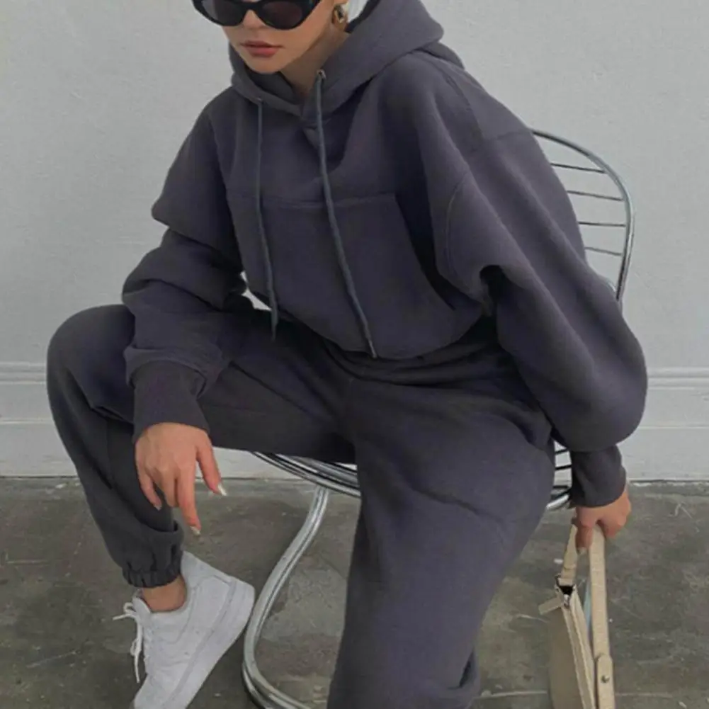 Estilo: Casual Género: Mujeres Tipo de talla: Regular Cintura: cintura media Tipo de cuello: con capucha Longitud de La Manga: manga larga Longitud del pantalón: longitud completa Temporada: otoño, Primavera, Invierno Características: suave, cintura elástica, color sólido