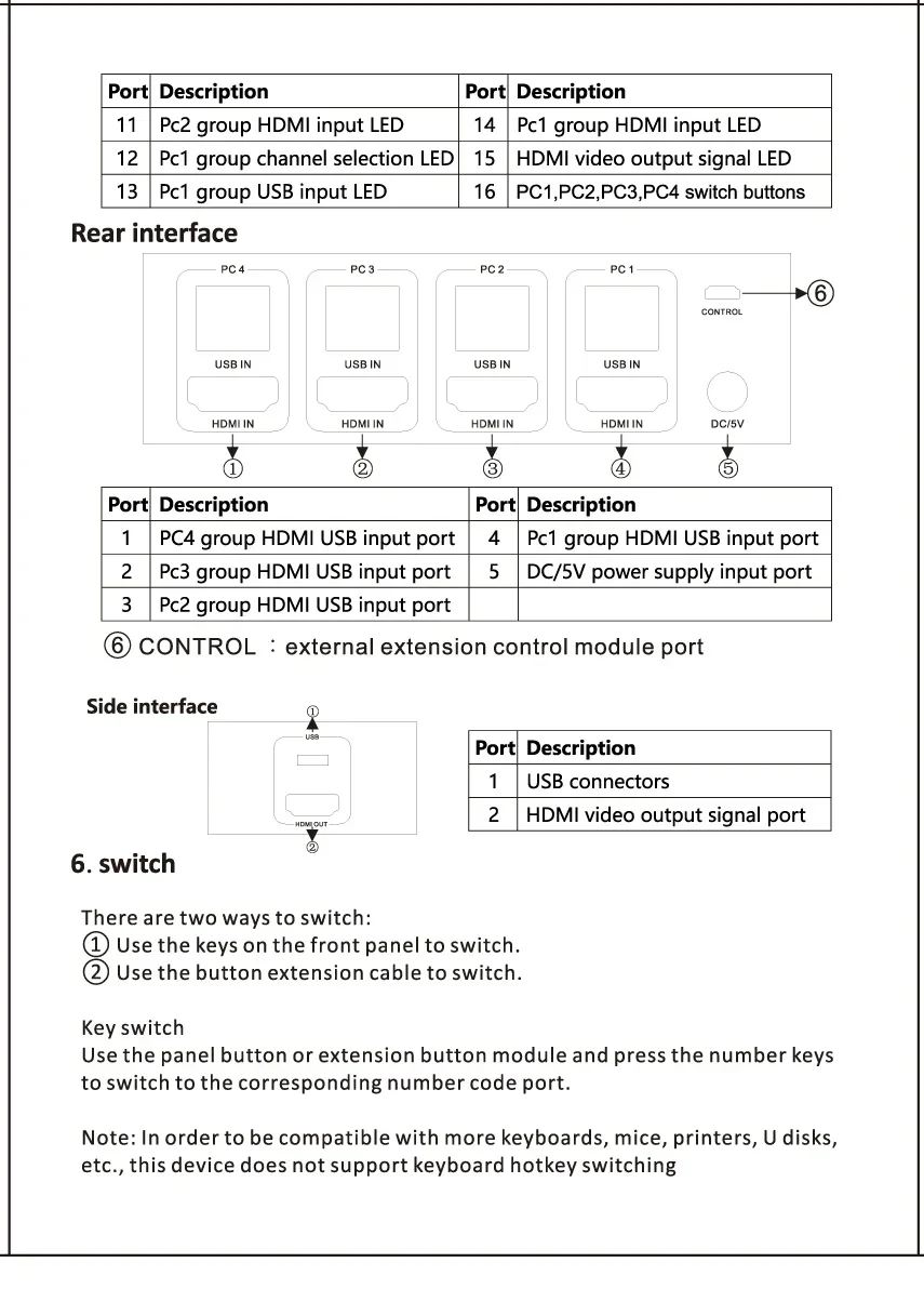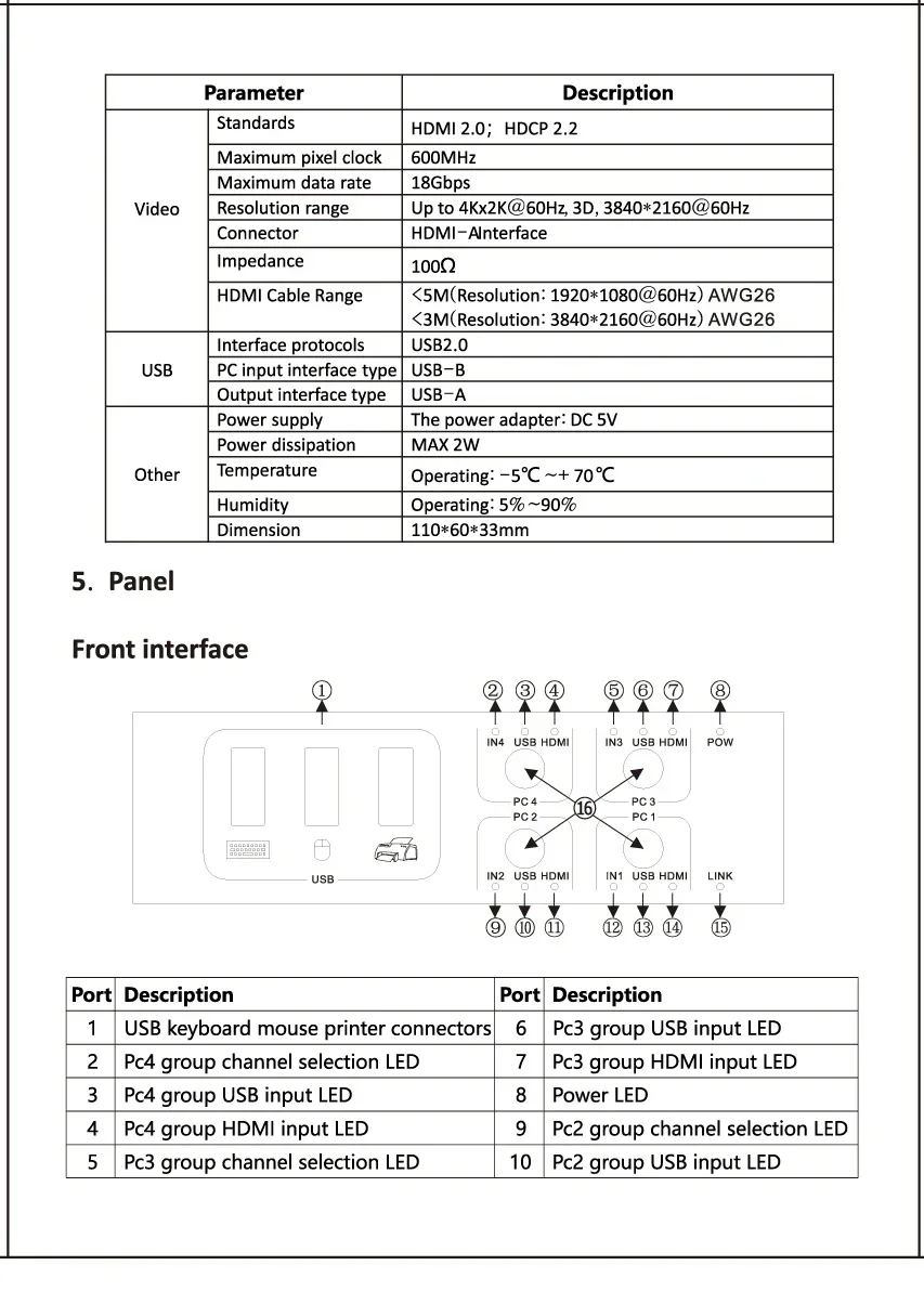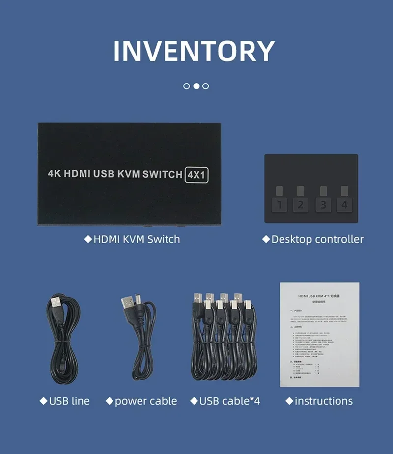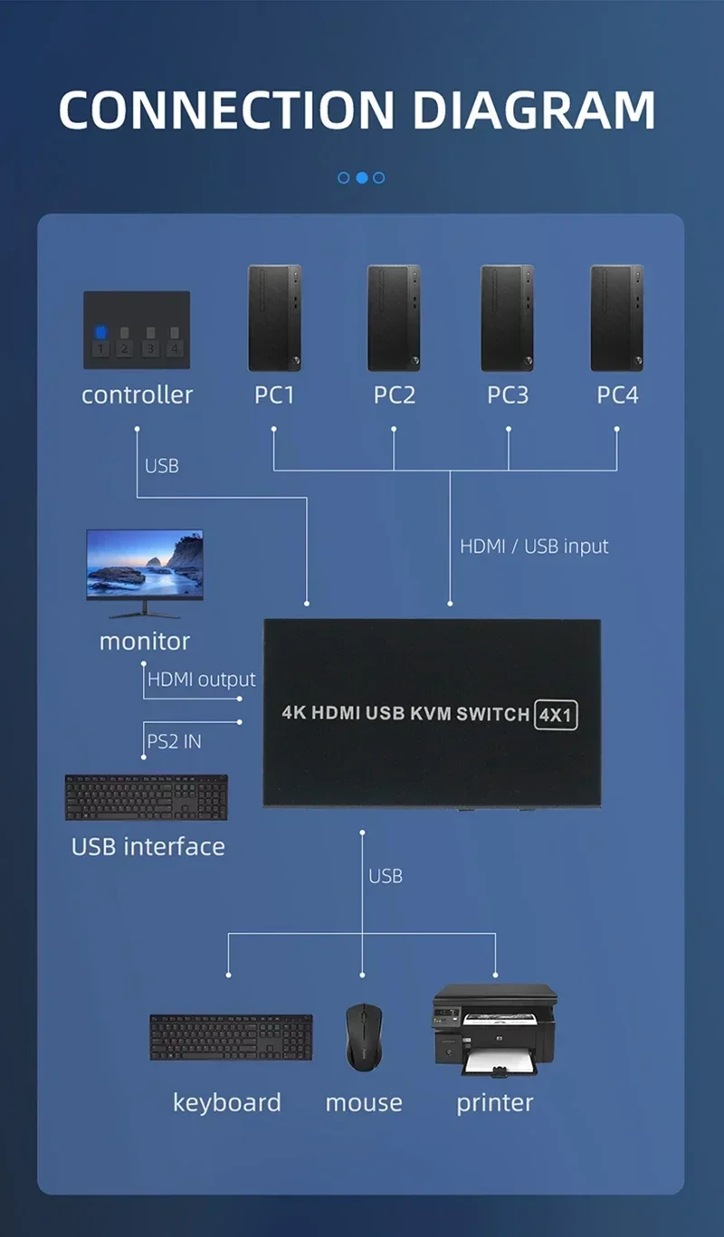 Tipo de artículo: Conmutador KVM USB 4K 4x1 HDMI (interfaz USB 2.0)