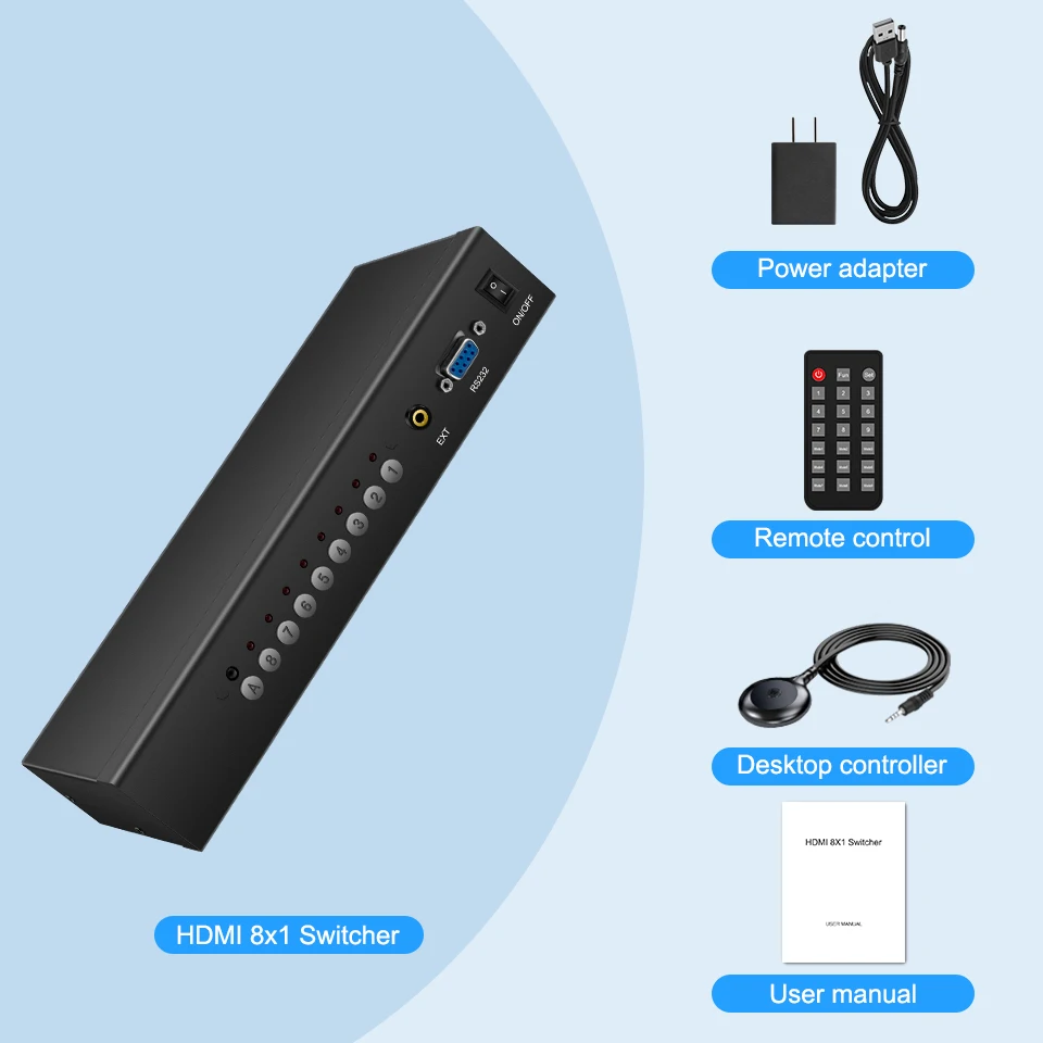 4k30hz HDMI 8x1 switcher converter 8 HDMI input to 1 HDMI output serial digital video signal switch for Camera Projector Monitor
