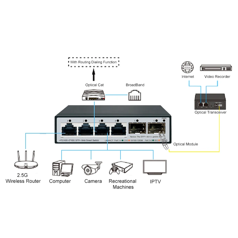 Comprar Conmutador administrado inteligente JT-COM de 2,5 GbE, 4 puertos RJ45, 2500Mbps, conmutador de red Ethernet gestionado por Web, 2 puertos, 10G, SFP + ranura, interruptor de laboratorio doméstico
